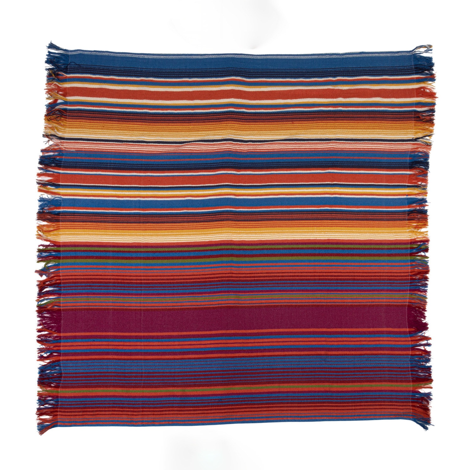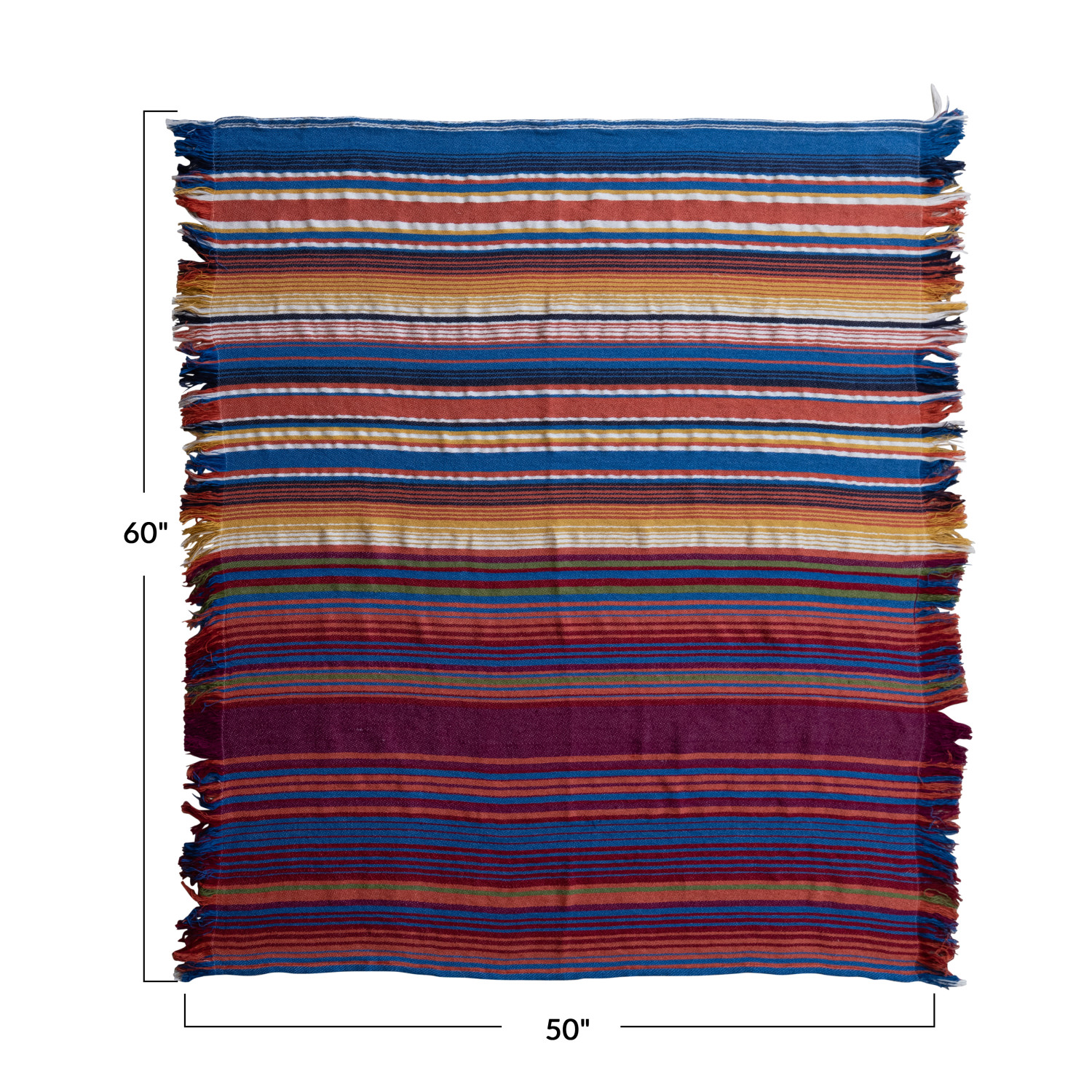 Catalog Name: 60"L x 50"W Woven Fabric Indoor/Outdoor Striped Throw w/ Fringe, Multi Color