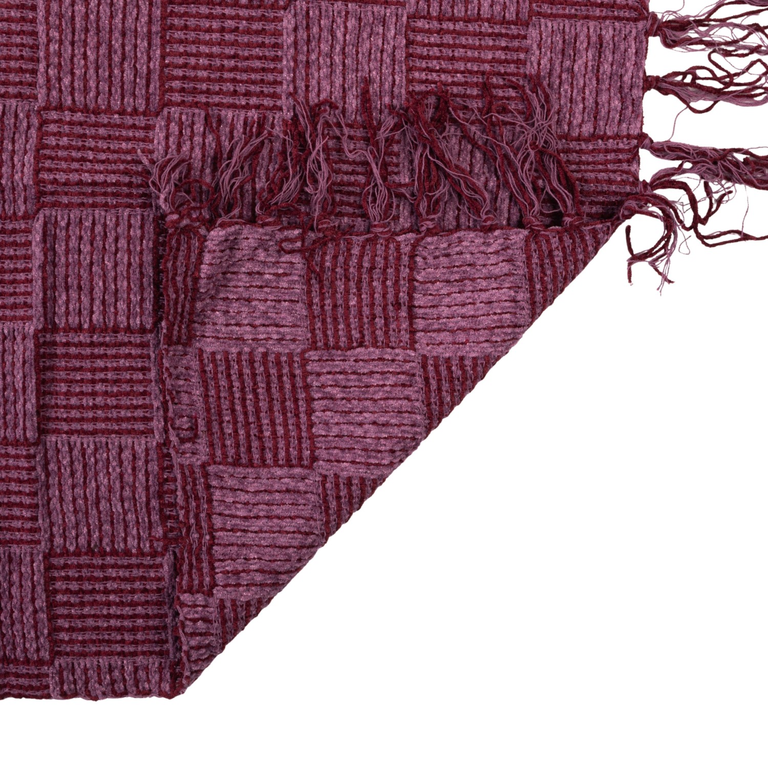 Catalog Name: 60"L x 50"W Woven Cotton Blend Chenille Throw w/ Check Pattern & Fringe, Berry Color & Pink