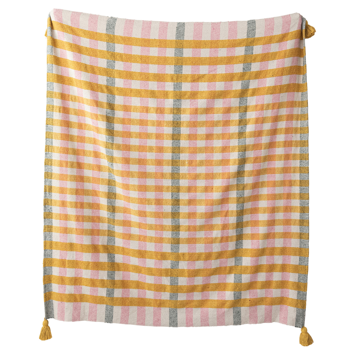 Woven Recycled Cotton Jacquard Throw w/ Tassels Plaid
