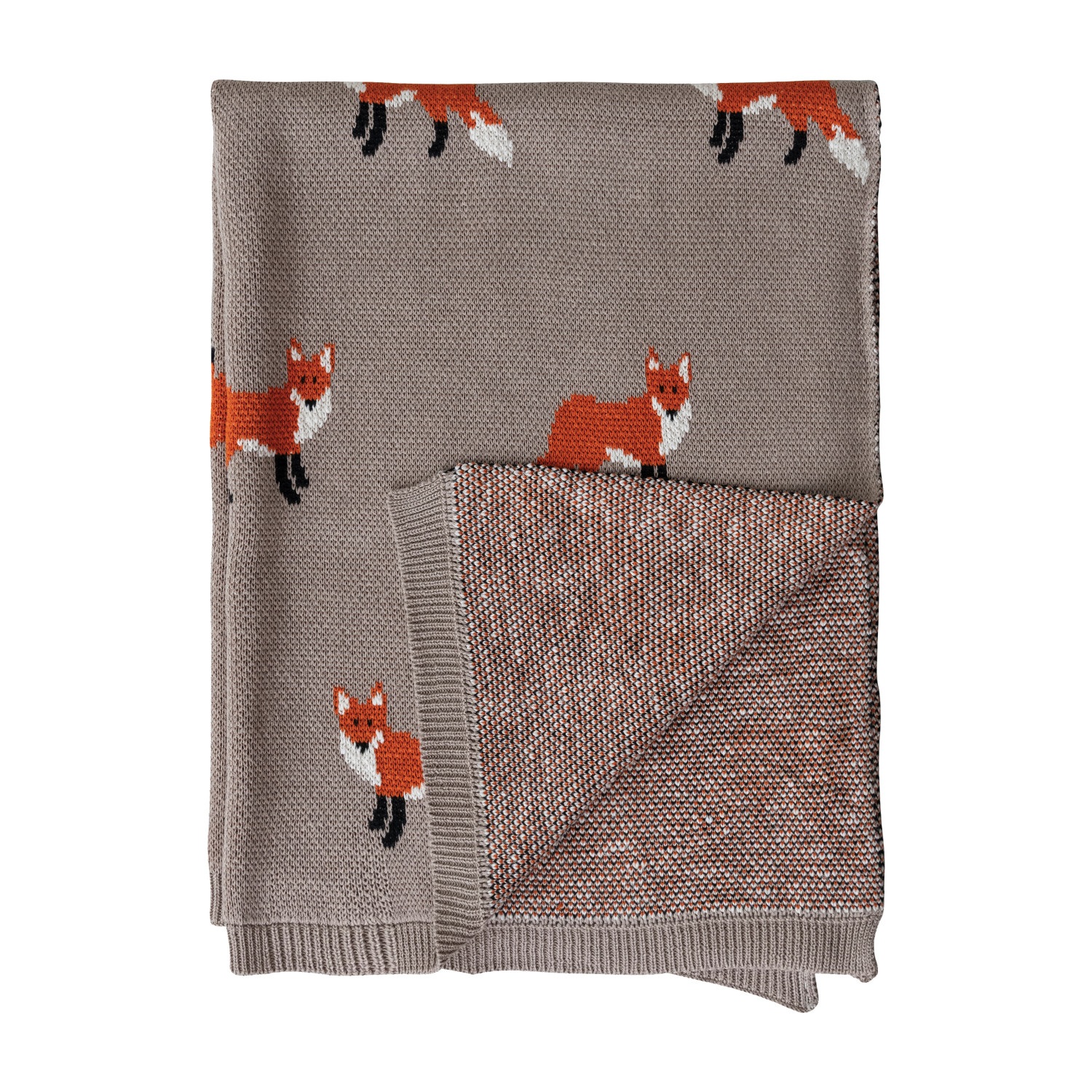 Cotton Knit Baby Blanket with Foxes