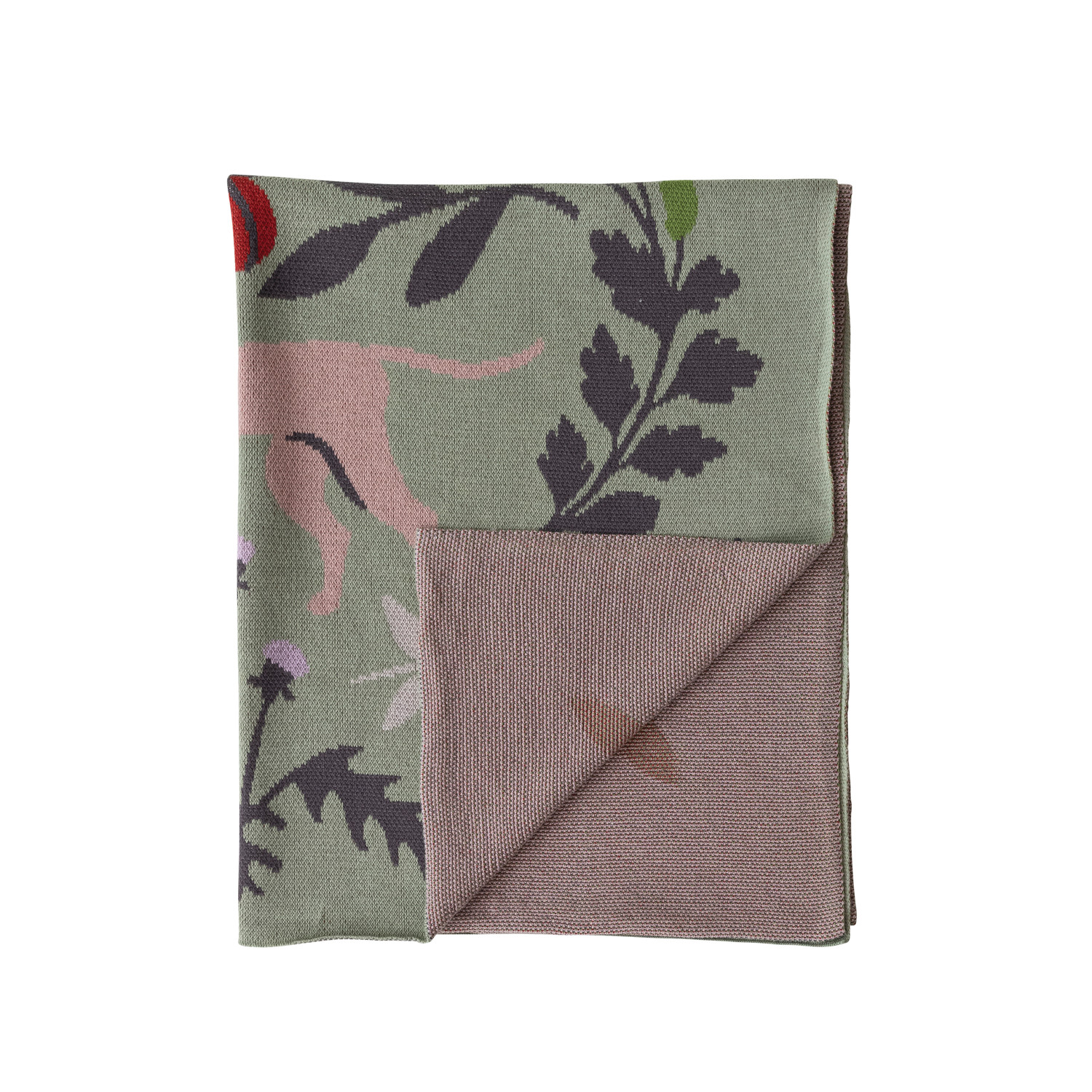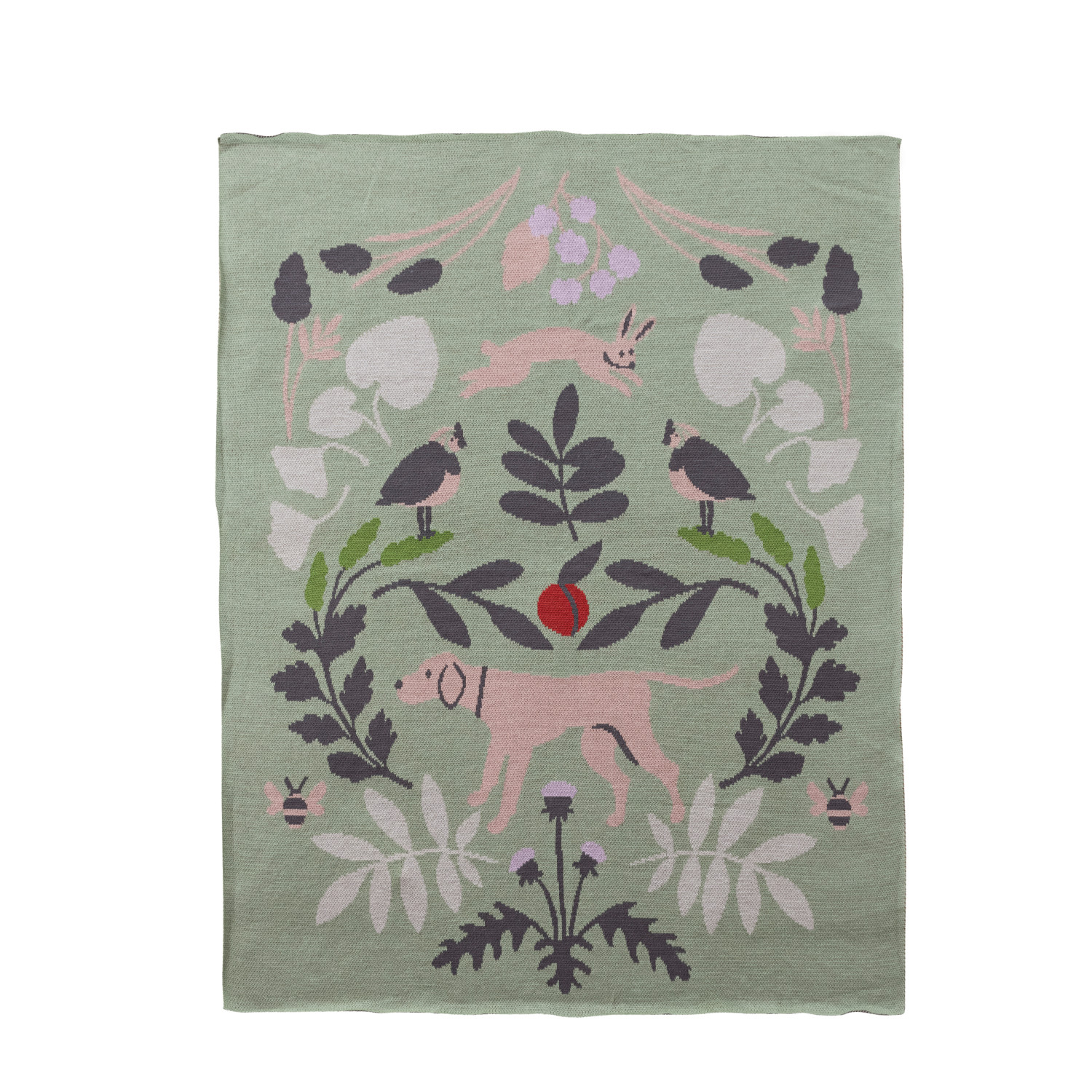 Cotton Knit Baby Blanket with Botanicals & Animals ©