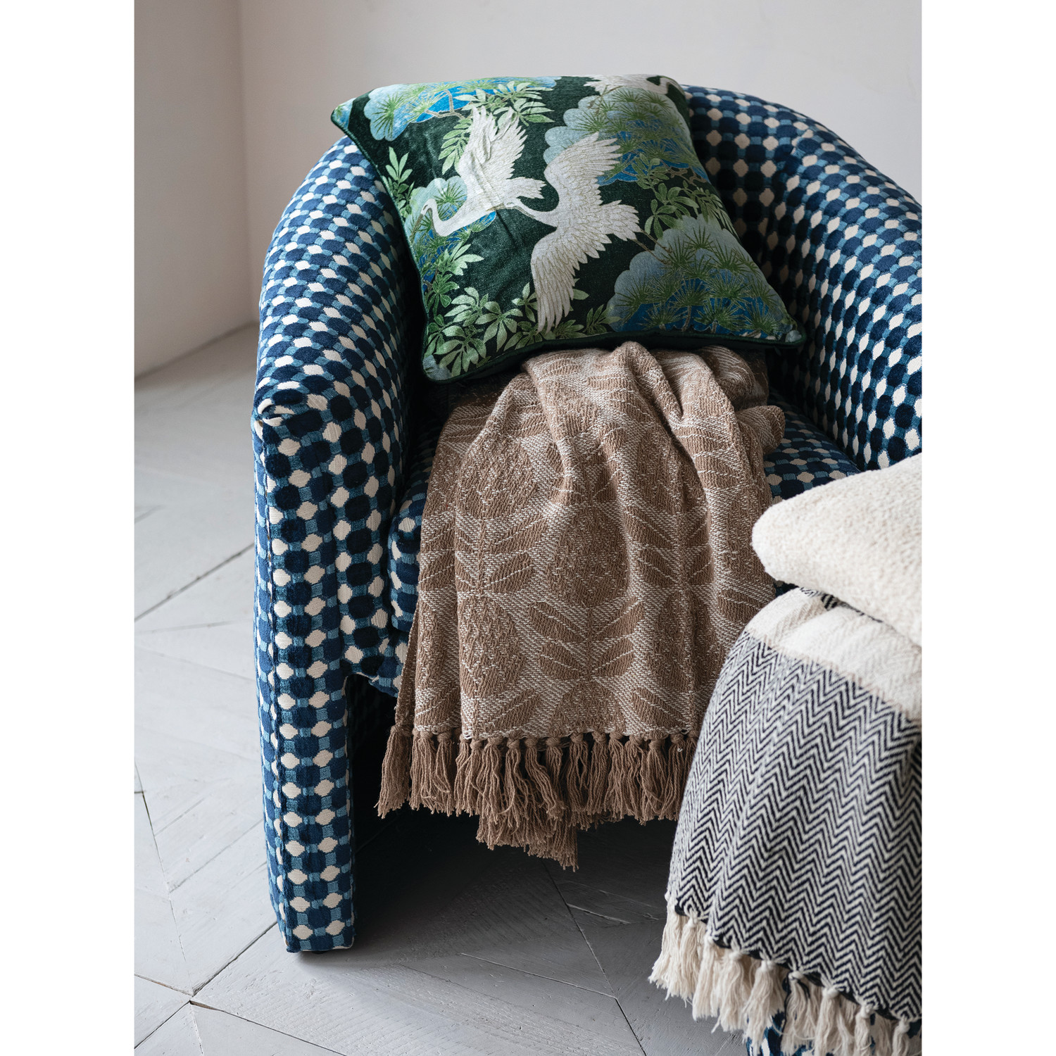 60"L x 50"W Woven Recycled Cotton Blend Jacquard Throw with Floral Pattern & Fringe