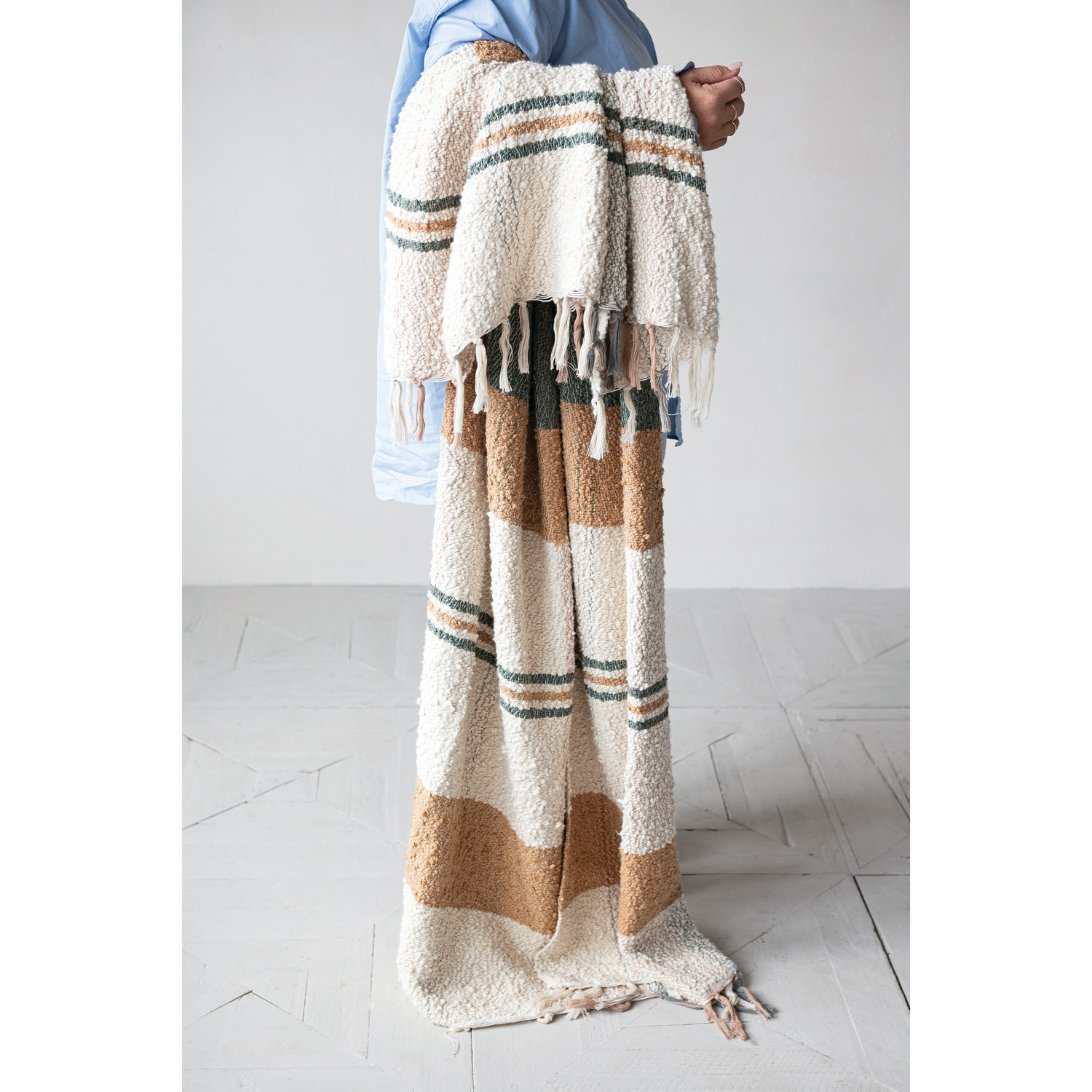 60"L x 50"W Hand-Woven Cotton Slub Striped Throw with Fringe