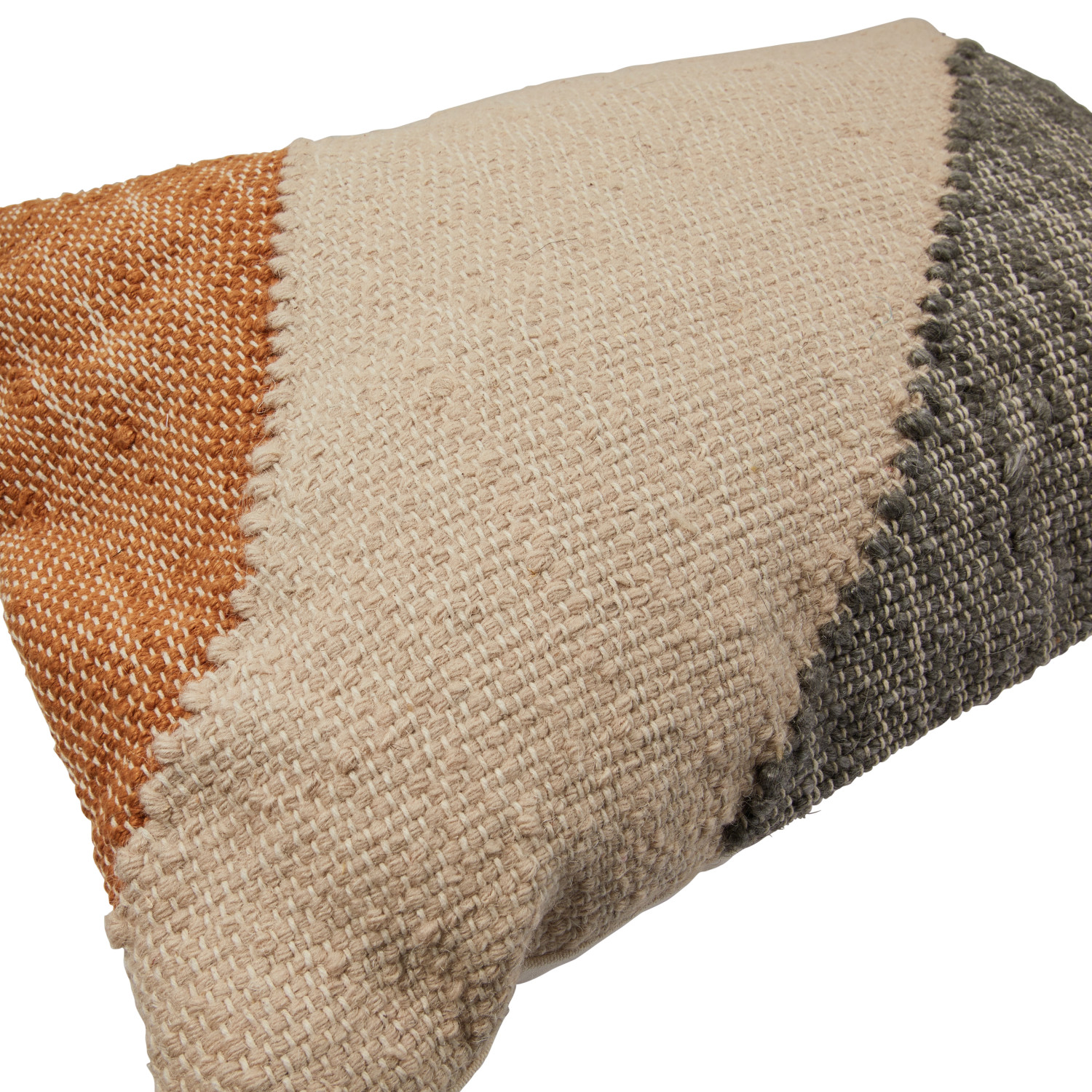 Catalog Name: 24"L x 16"H Woven Cotton Blend Kilim Lumbar Pillow, Polyester Fill, Orange Color, Beige & Blue