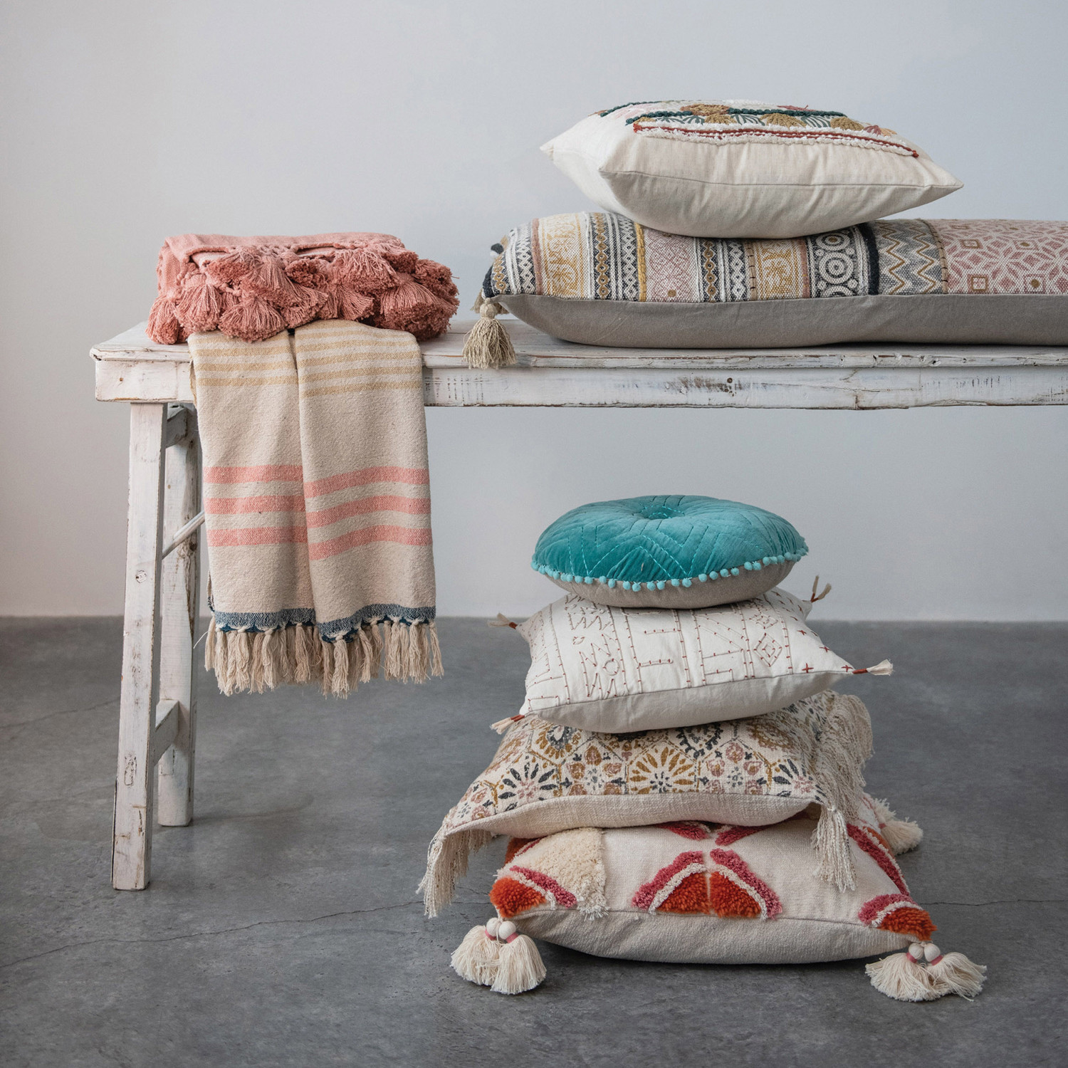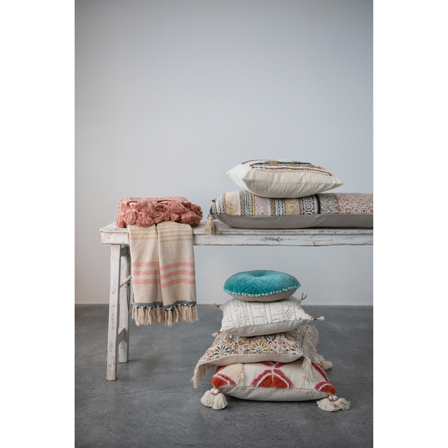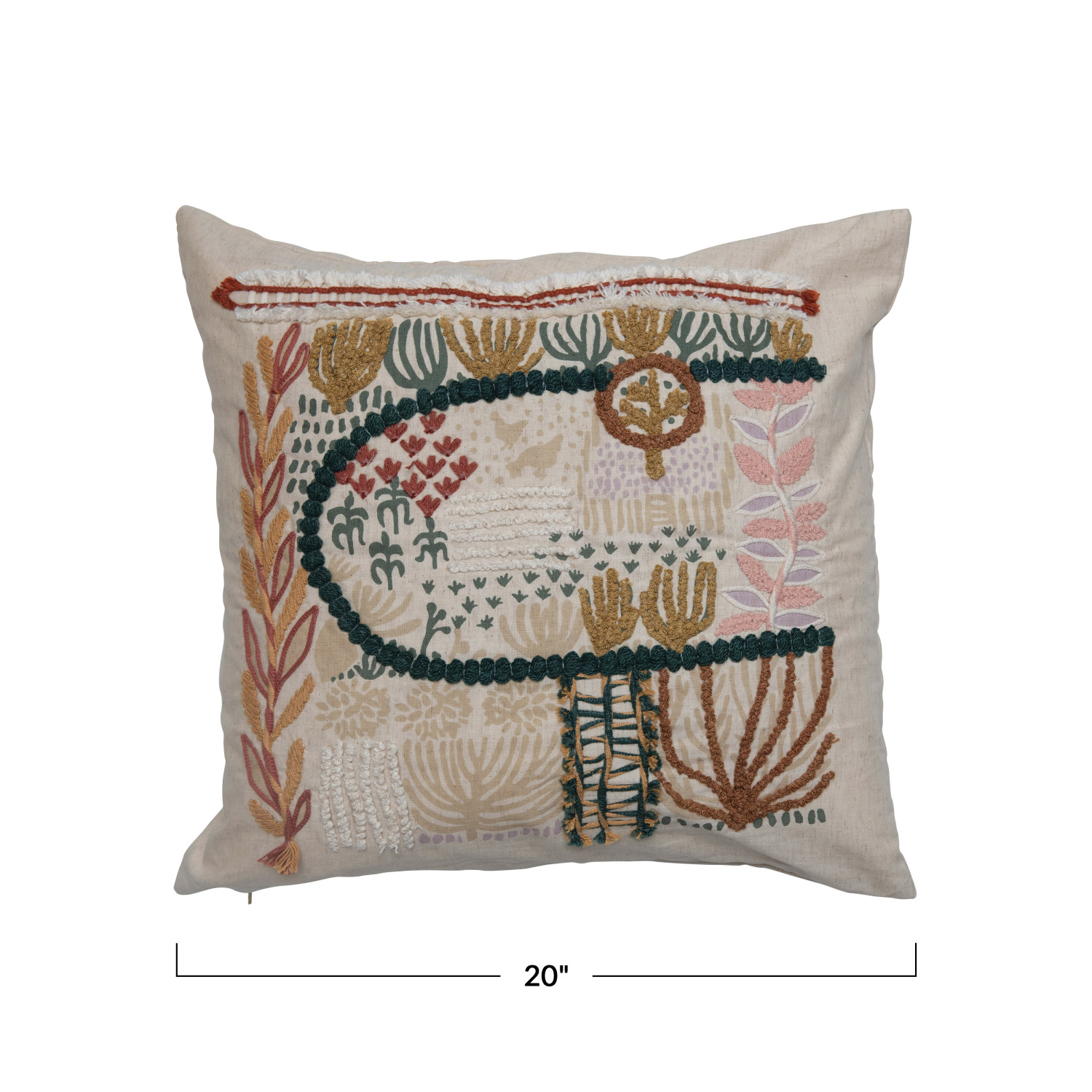 20" Cotton Blend Pillow w/ Embroidery, Polyester Fill