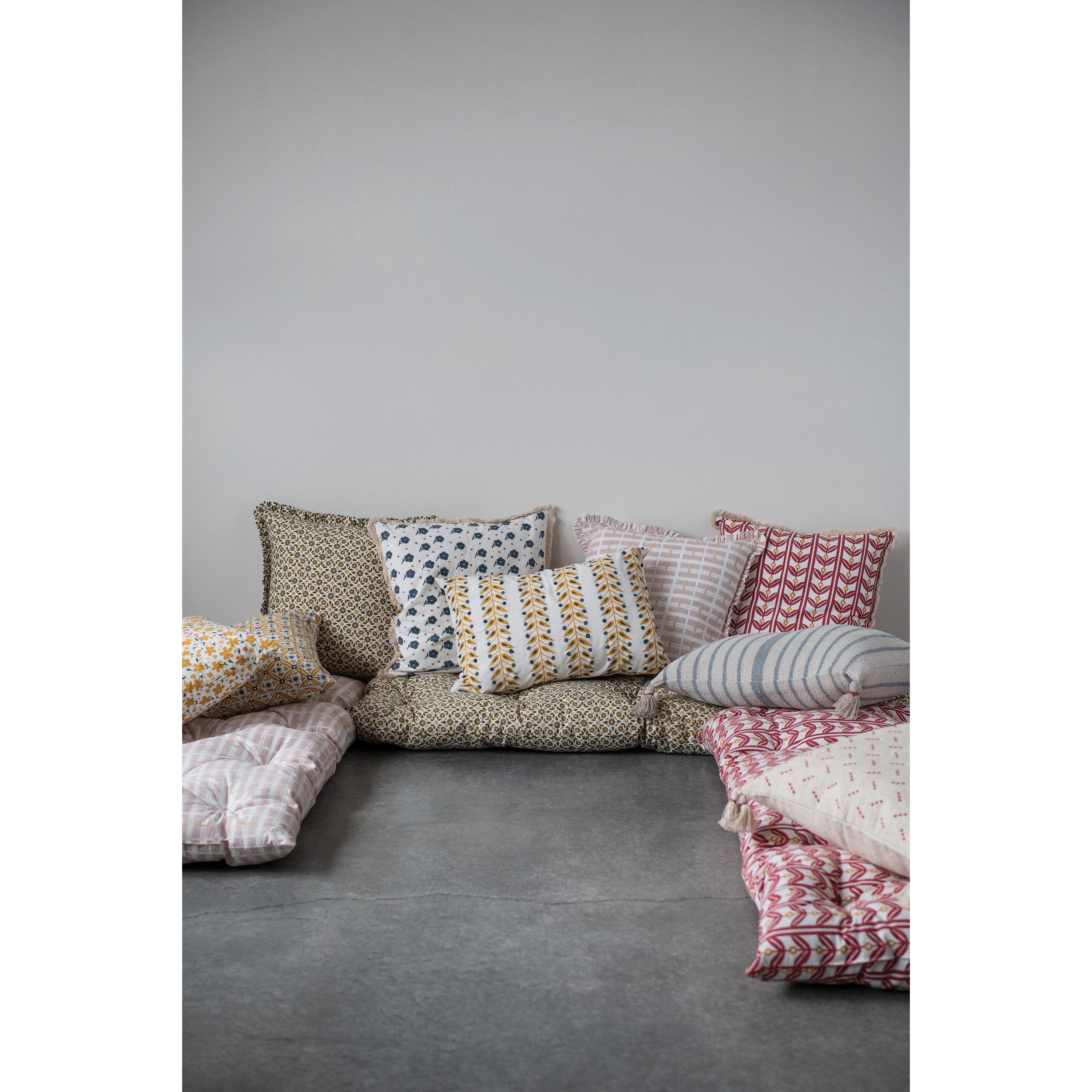 20" Cotton Printed Pillow with Ruffled Edge, 2 Styles