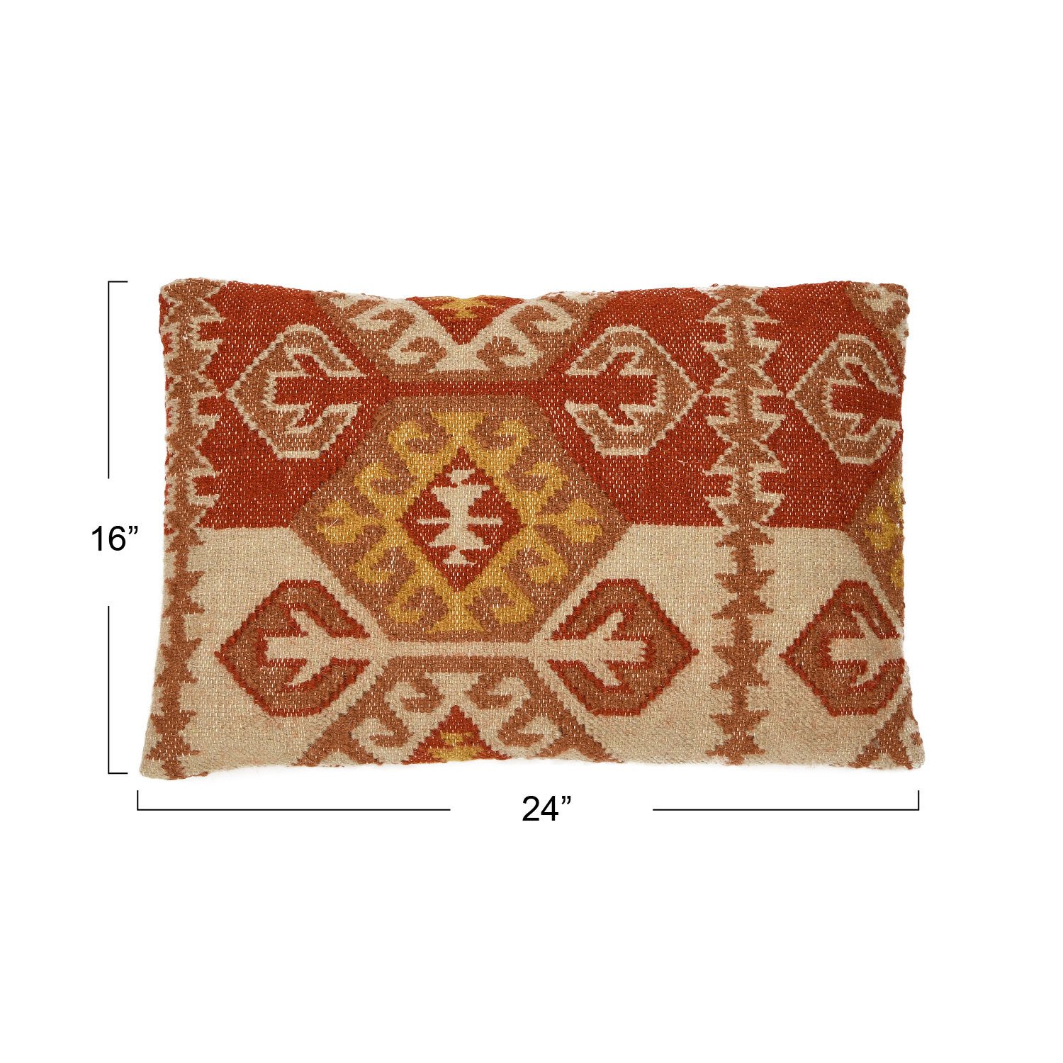 24" x 16" Woven Wool Blend Kilim Lumbar Pillow w/ Ikat Pattern, Polyester Fill