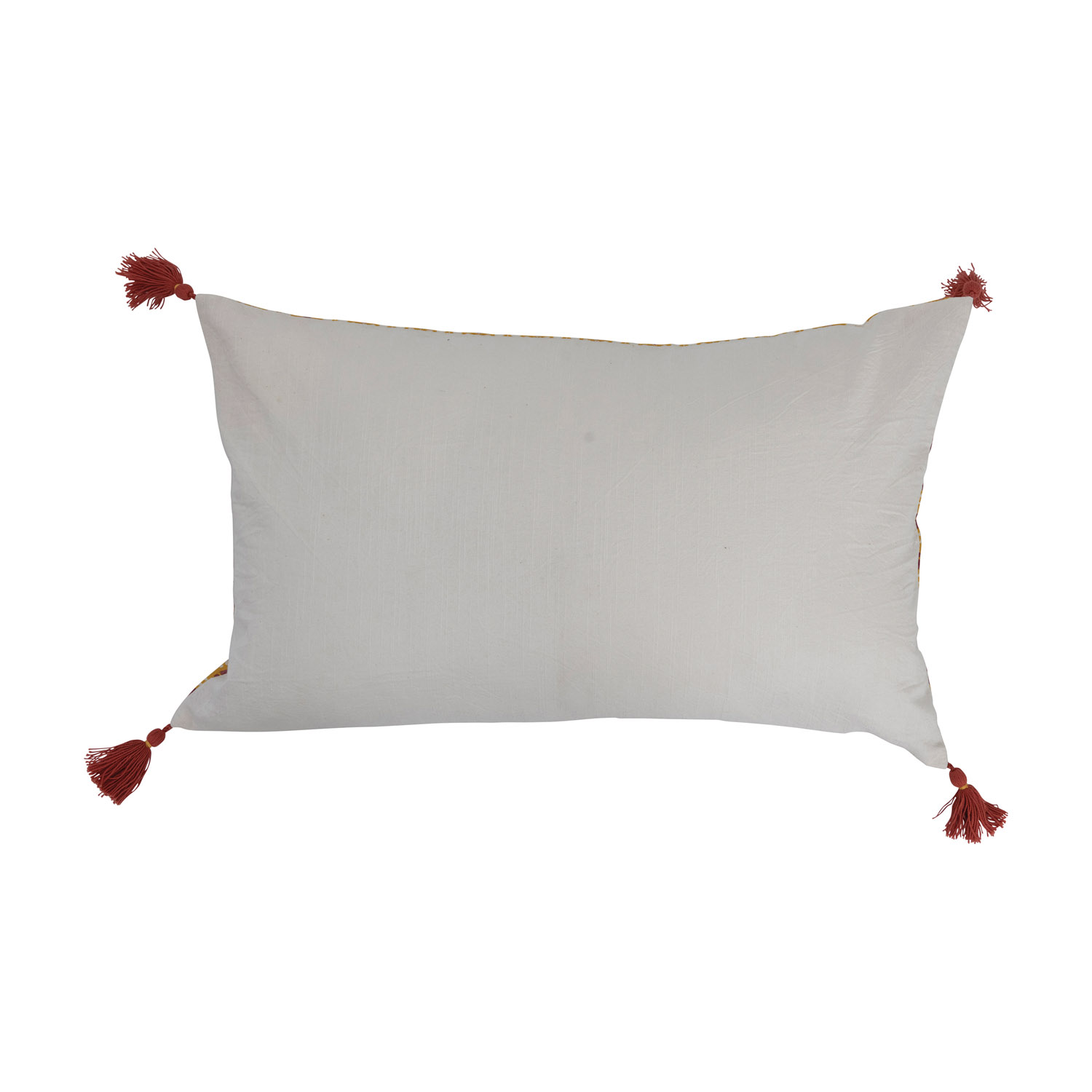 Catalog Name: 26"L x 16"H Cotton Slub Lumbar Pillow w/ Floral Pattern & Tassels, Rust & Mustard Color