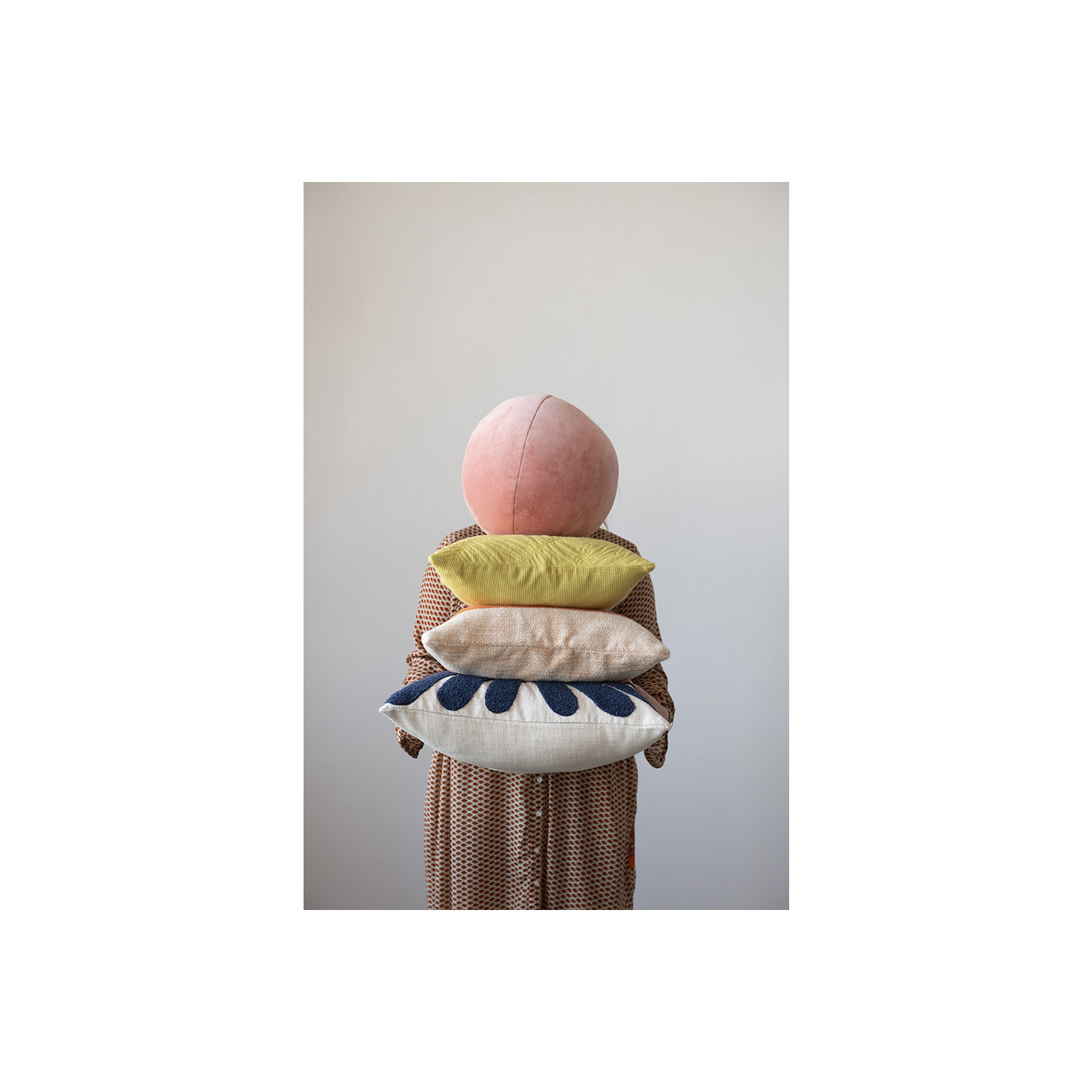 16" Cotton Pillow with Quilted Fern Frond Pattern