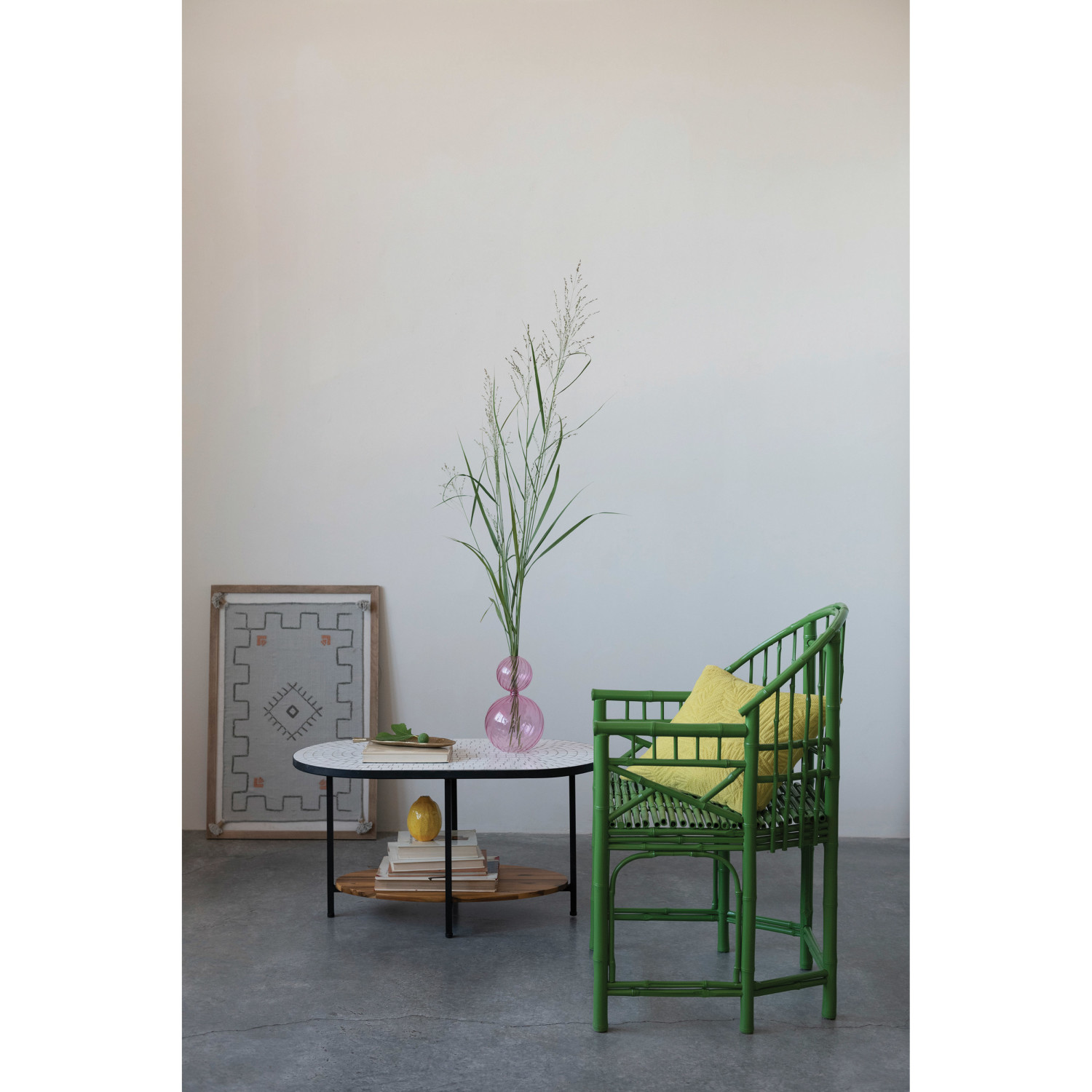 Catalog Name: 16" Square Cotton Pillow w/ Quilted Fern Frond Pattern, Chartreuse