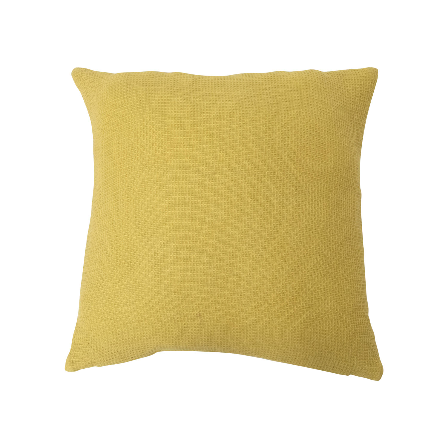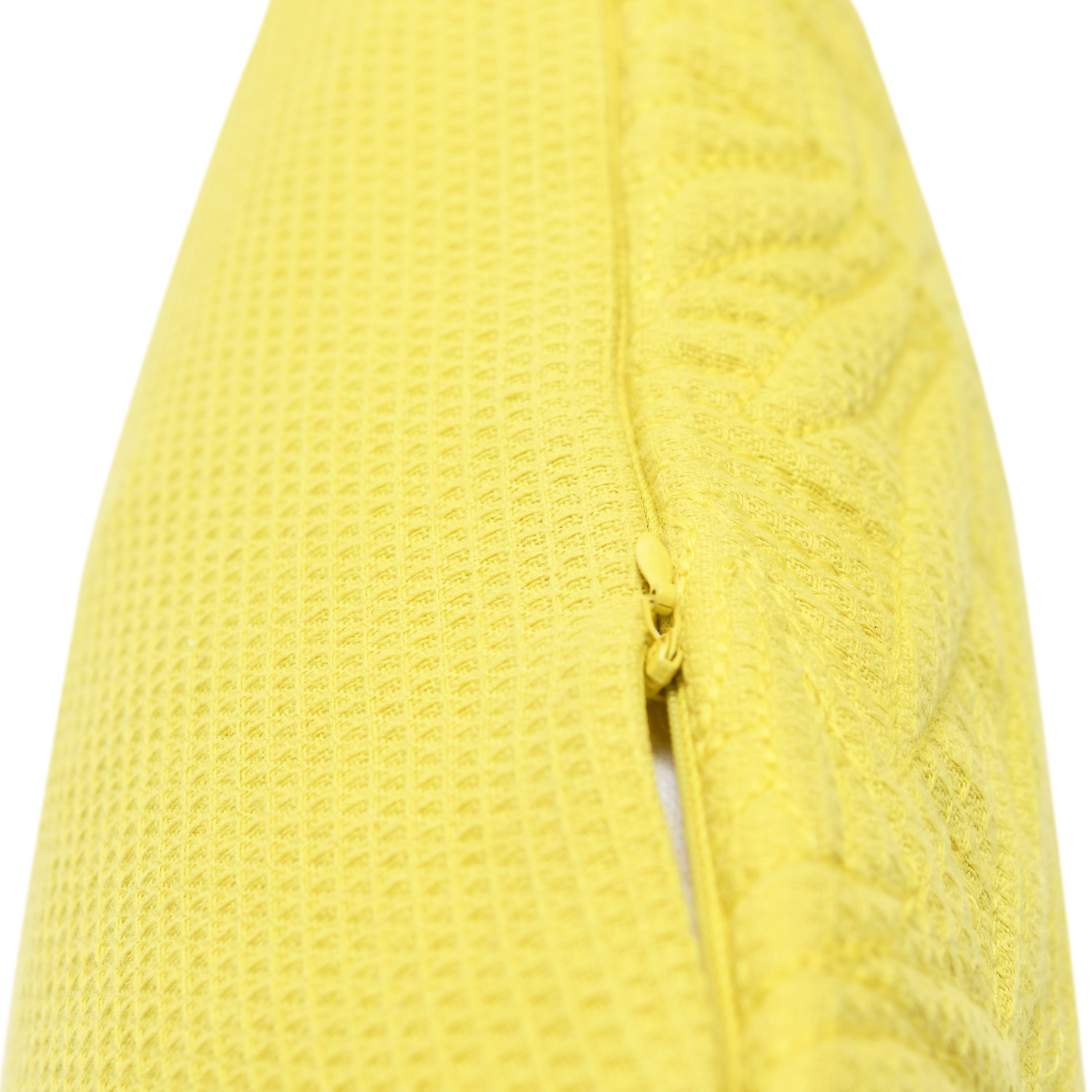 This subtly tropical throw pillow showcases a quilted fern frond pattern on soft cotton. Square chartreuse throw pillow with quilted fern frond pattern; Chartreuse cotton encasement on back. Express your constantly evolving style with the simple addition of this eye-catching pillow. Removable cotton throw pillow cover and insert; Hidden in seam zipper closure; Machine wash warm, gentle cycle, do not bleach, do not tumble dry; Do not dry clean, medium iron.