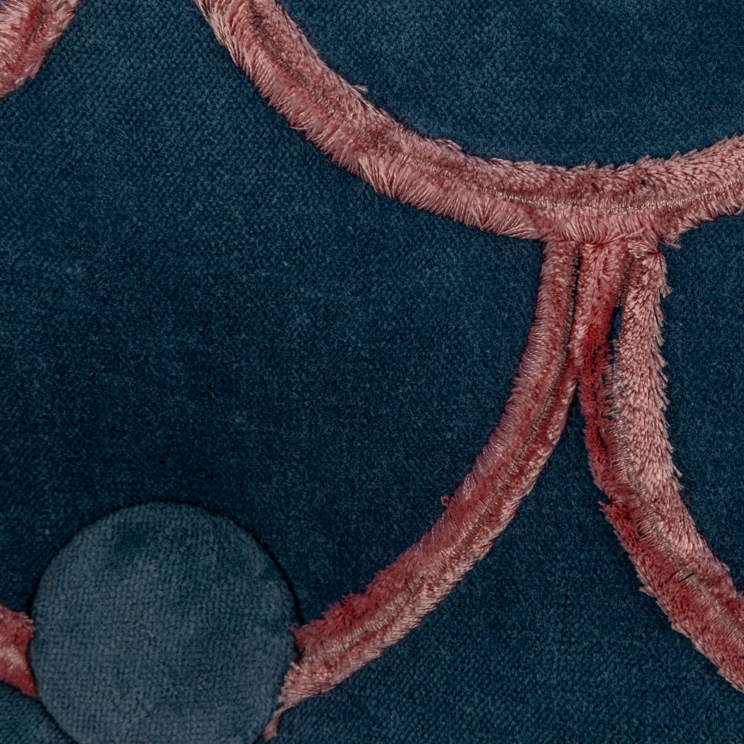 Add a touch of charm and sophistication to any space with the Round Cotton Pillow with a tufted scallop pattern in navy blue and pink creating a visually appealing design that complements various decor styles. Primarily made of cotton, a natural and breathable fabric that offers comfort and durability, may contain other fibers that enhance its texture and visual appeal. The pillow is filled with polyester filler, providing a plush and supportive feel, it retains its shape over time, ensuring long-lasting comfort and resilience. The product is primarily made of cotton with other fibers and polyester filler. This pillow measures 18 inches in length and 18 inches in width. Add a touch of charm and sophistication to any space with the Round Cotton Pillow with a tufted scallop pattern in navy blue and pink creating a visually appealing design that complements various decor styles. Primarily made of cotton, a natural and breathable fabric that offers comfort and durability, may contain other fibers that enhance its texture and visual appeal. The pillow is filled with polyester filler, providing a plush and supportive feel, it retains its shape over time, ensuring long-lasting comfort and resilience. The product is primarily made of cotton with other fibers and polyester filler.
