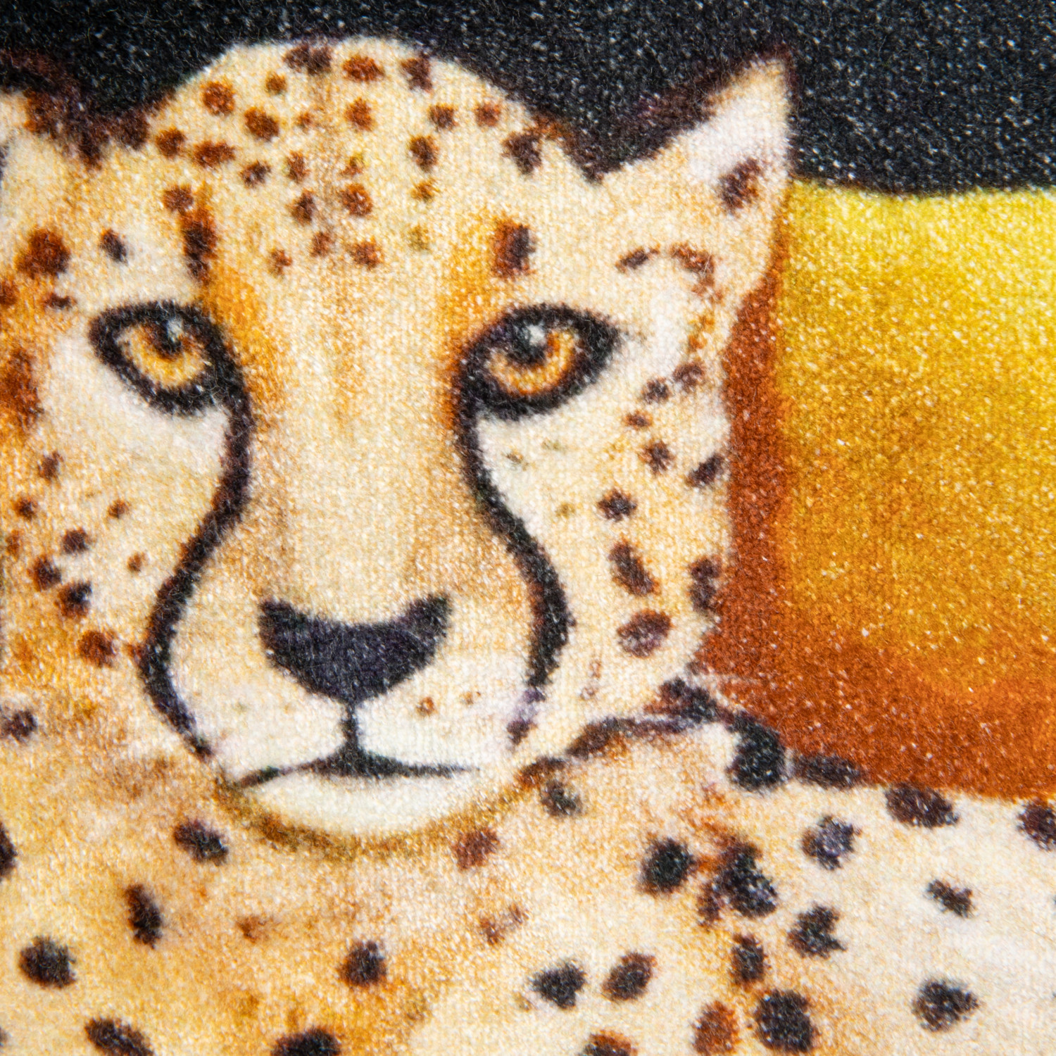 Catalog Name: 20"L x 14"H Velvet Printed Lumbar Pillow w/ Cheetah Image & Eyelash Fringe, Multi Color