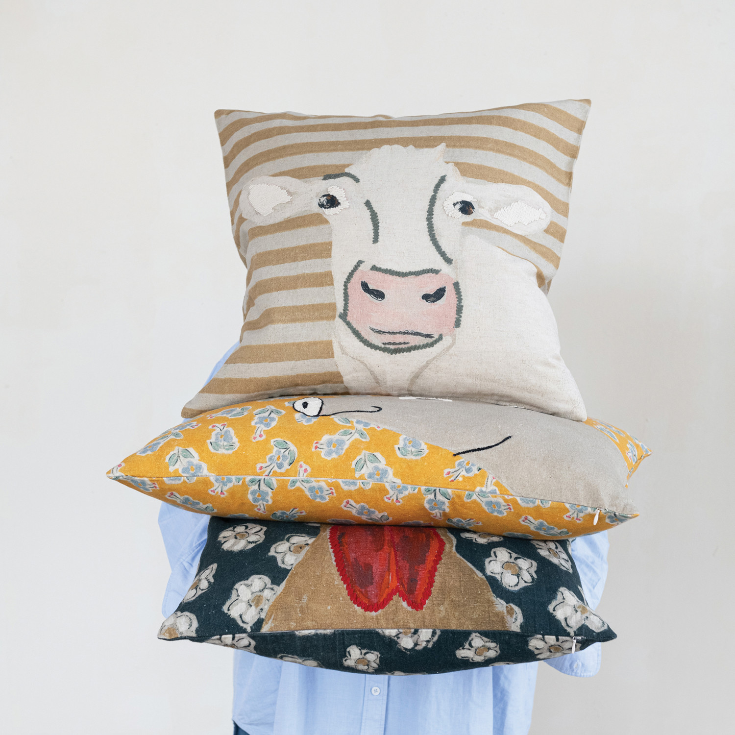 Cotton & Linen Printed Pillow with Embroidery ©