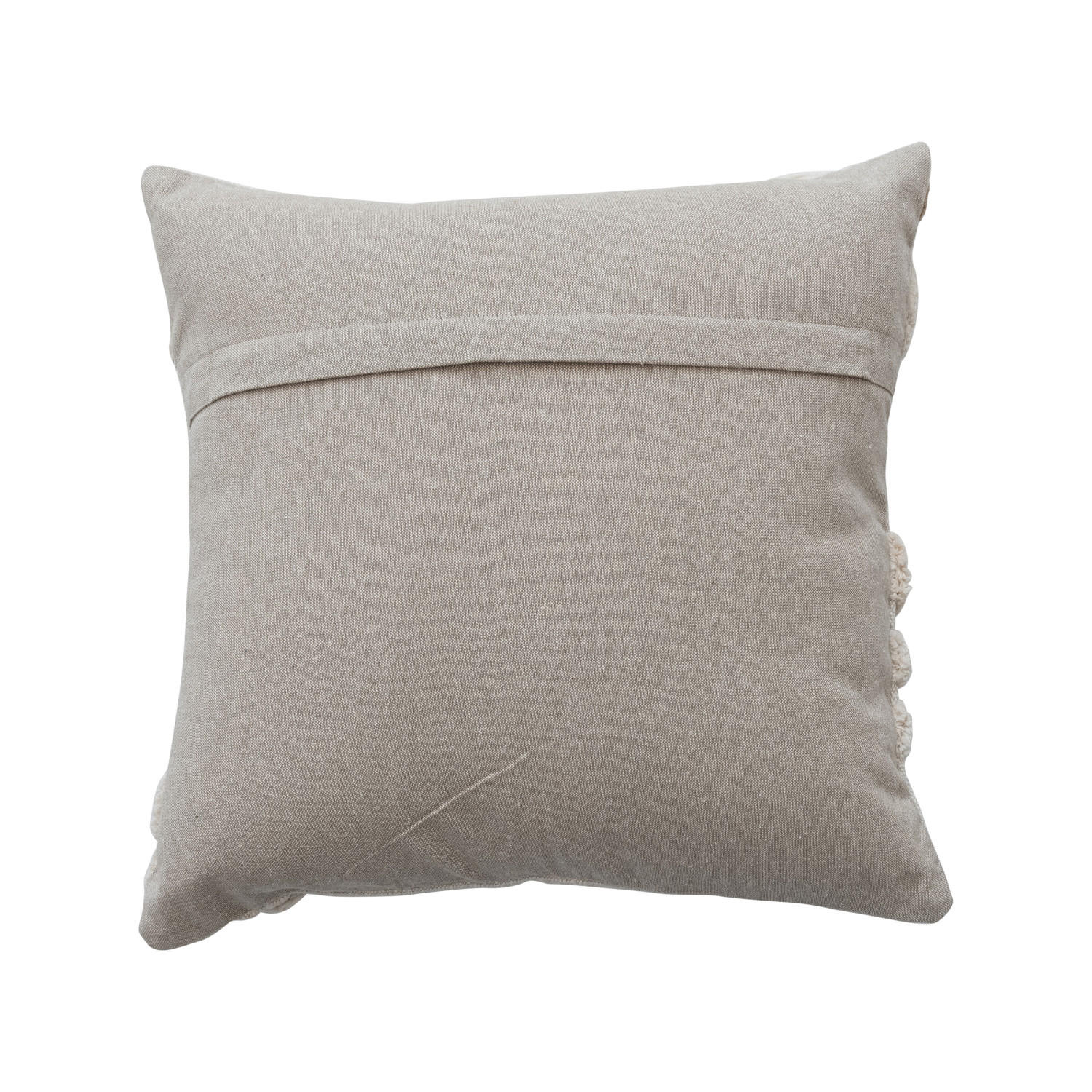 Catalog Name: 18" Square Cotton Slub Pillow w/ Tufted Flowers, Natural & Tan Color