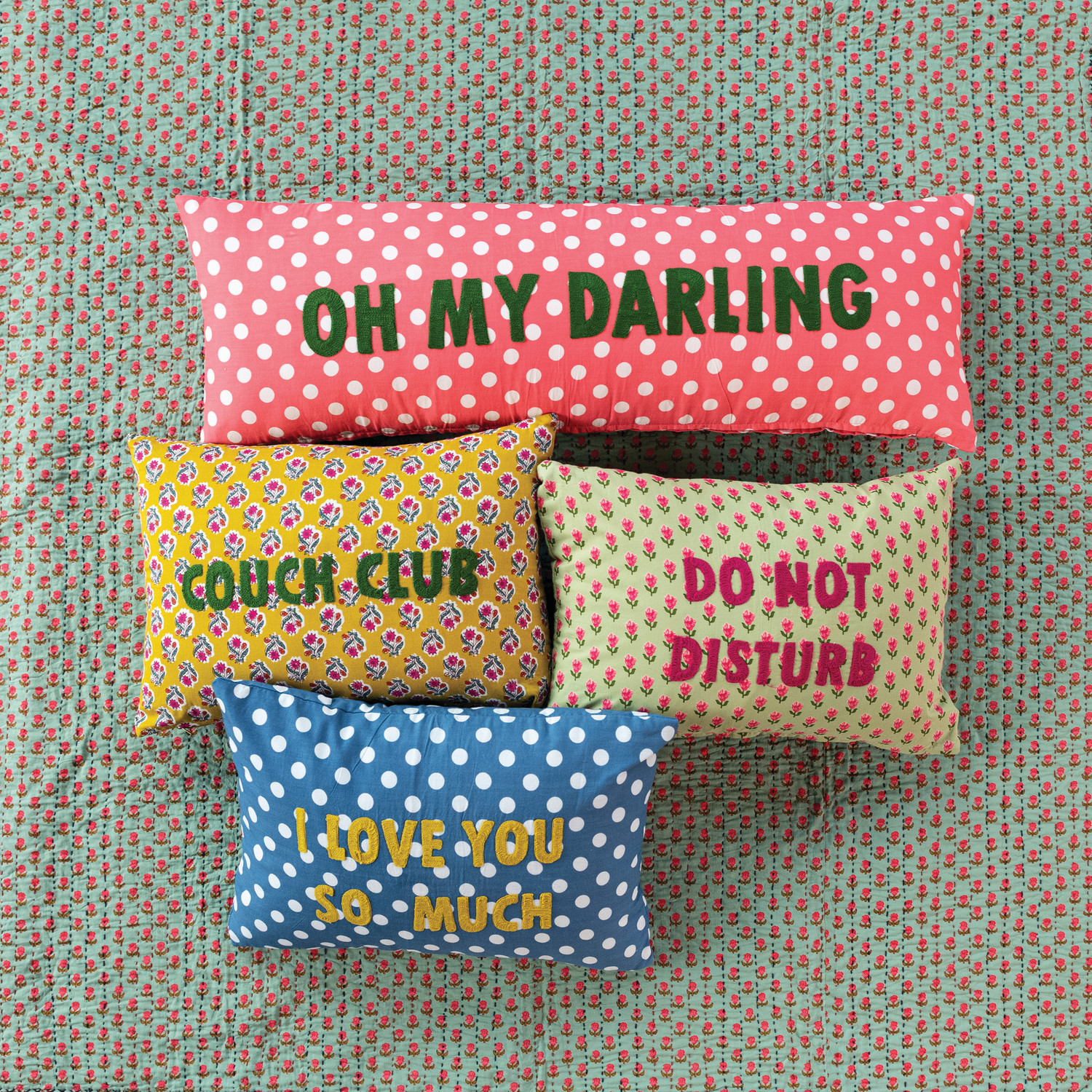 Cotton Voile Lumbar Pillow with Floral Pattern & Embroidery "Do Not Disturb"
