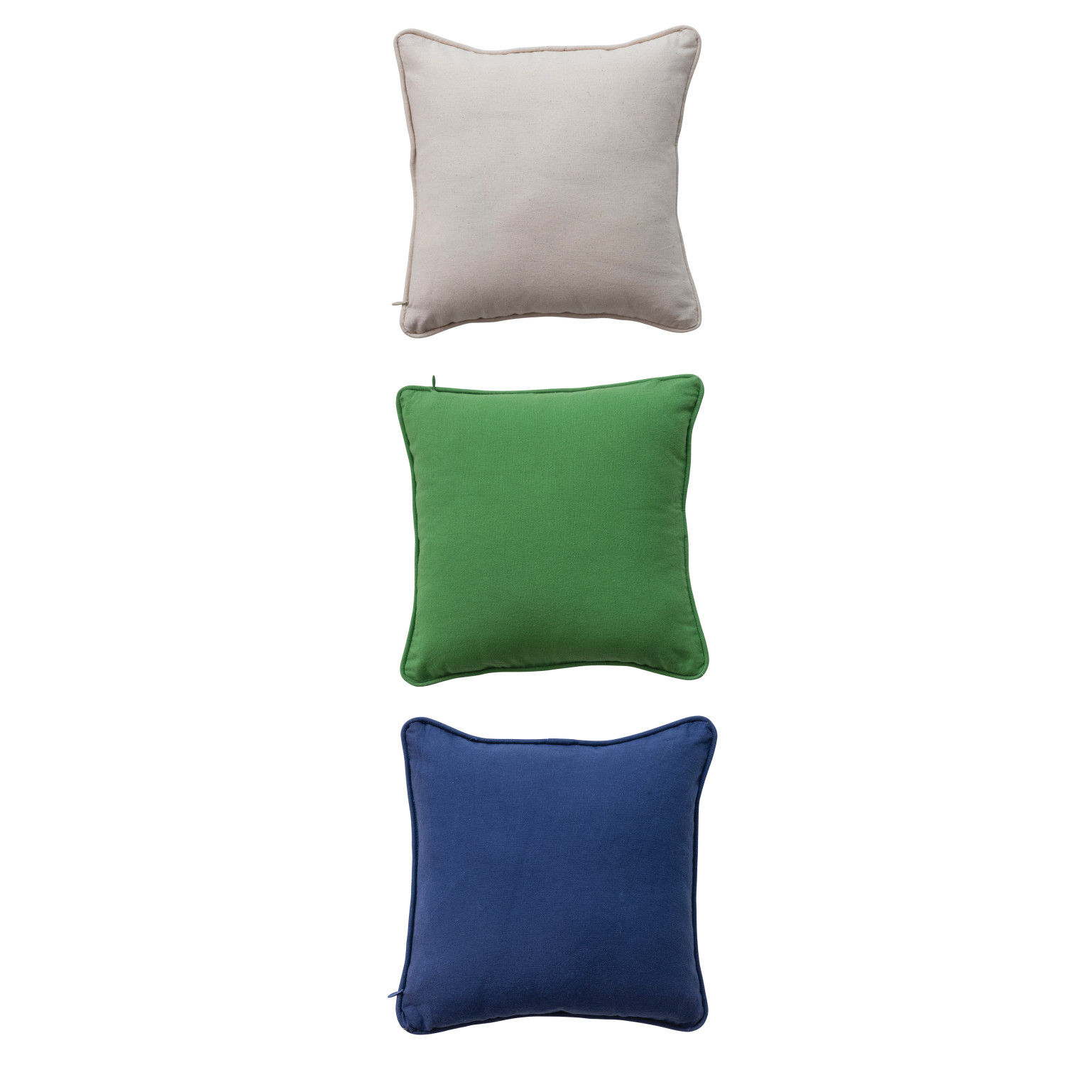 Catalog Name: 12" Square Cotton Slub Printed Pillow w/ Block Print Pattern & Piping, Multi Color, 3 Styles