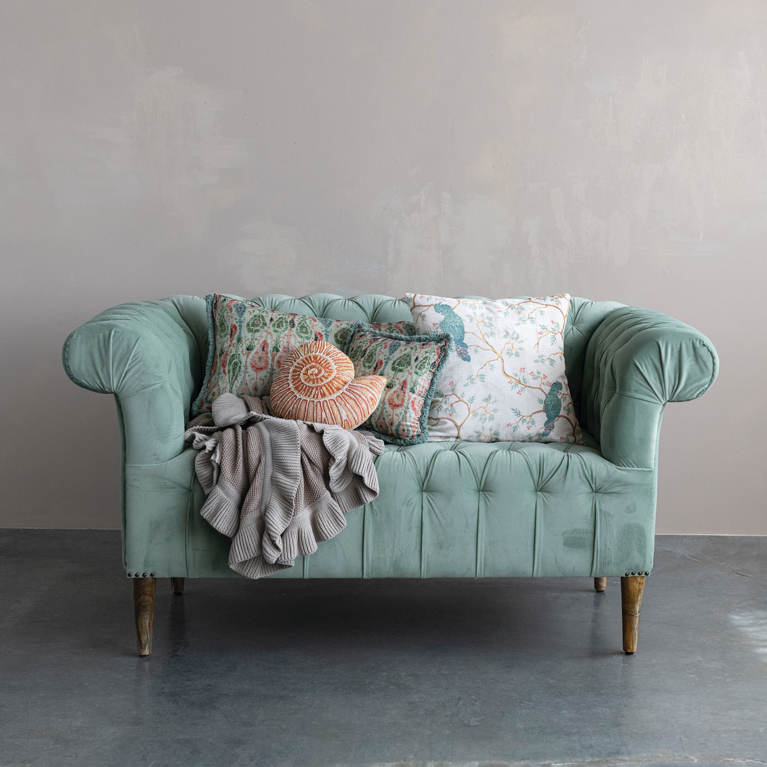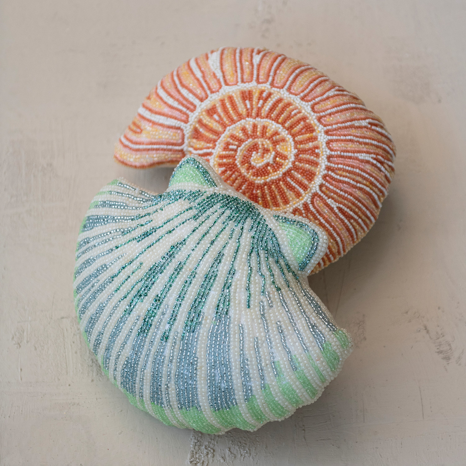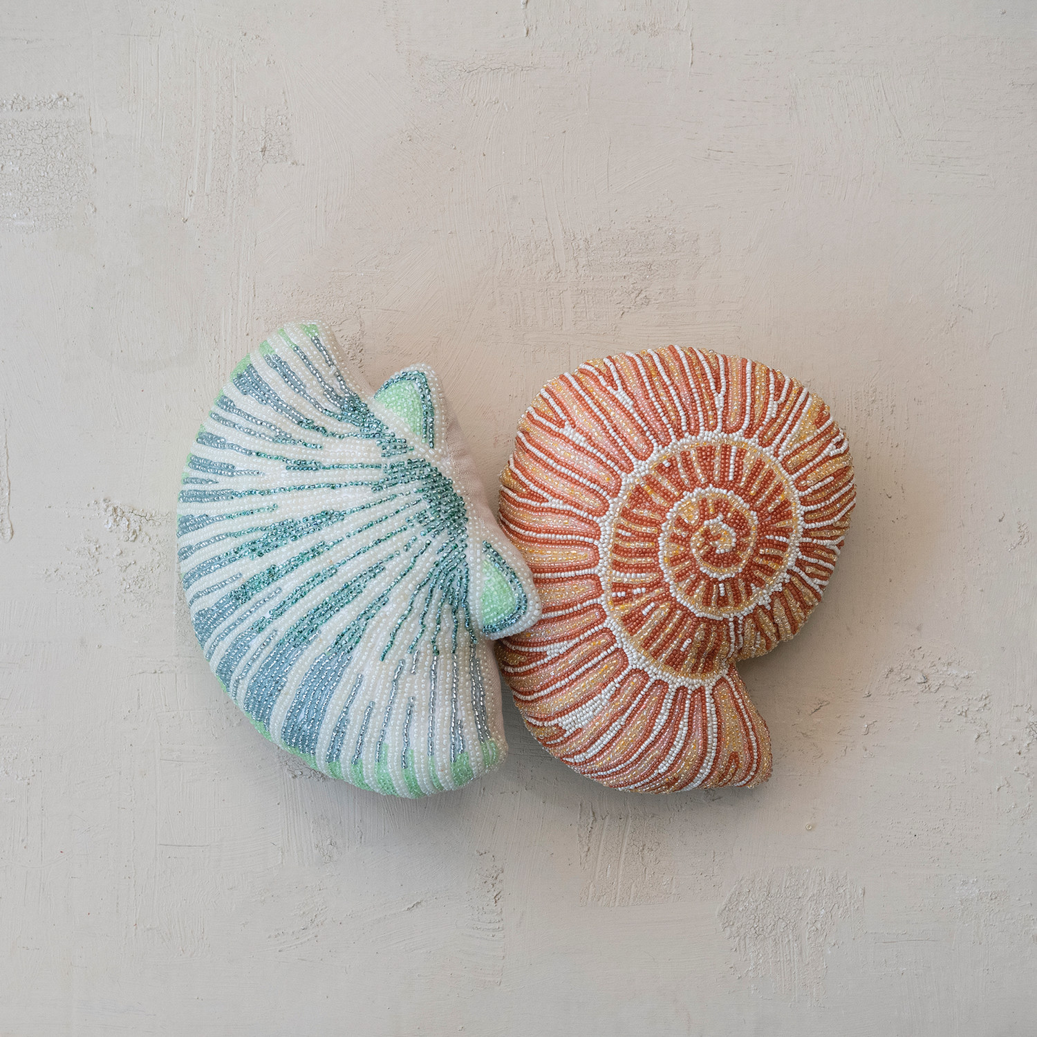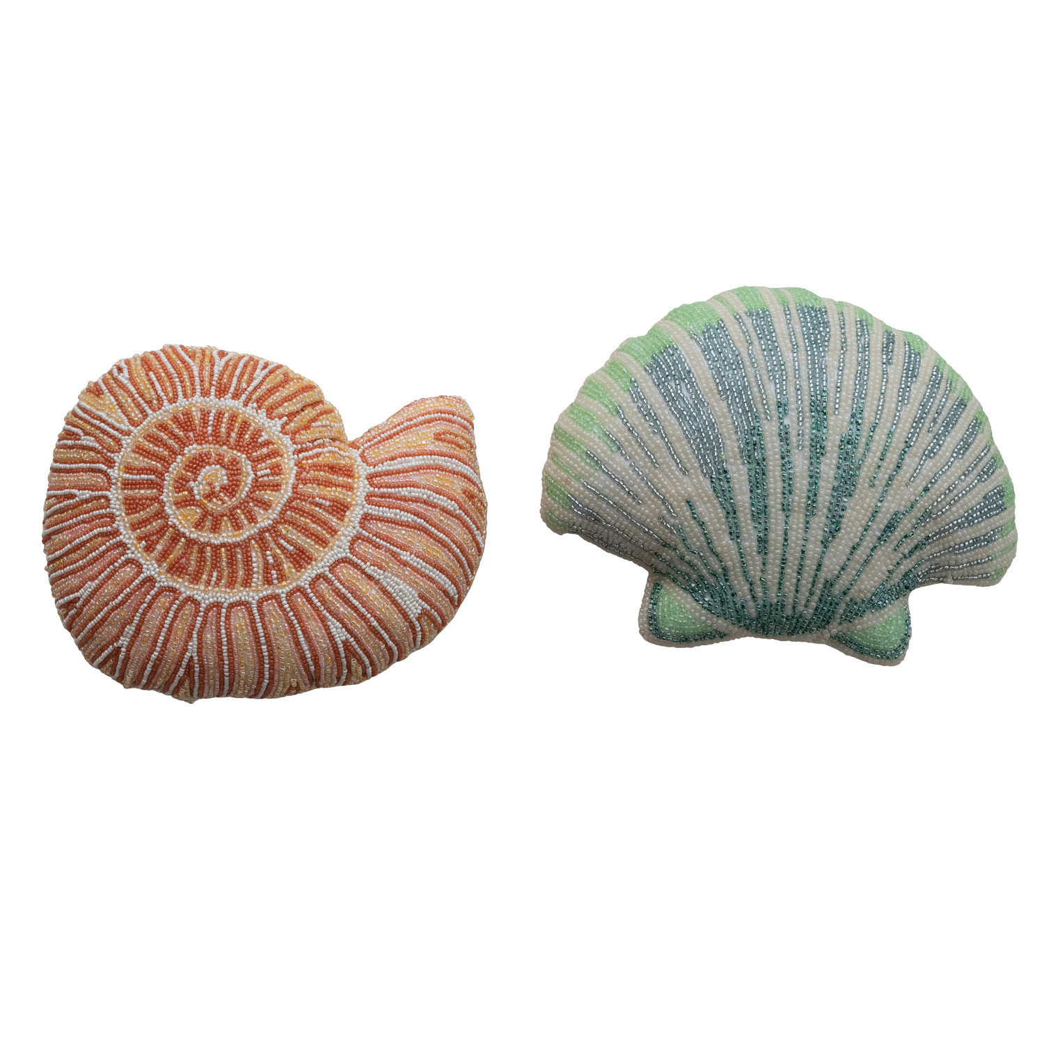 Fabric Beaded Shell Shaped Pillow, 2 Styles