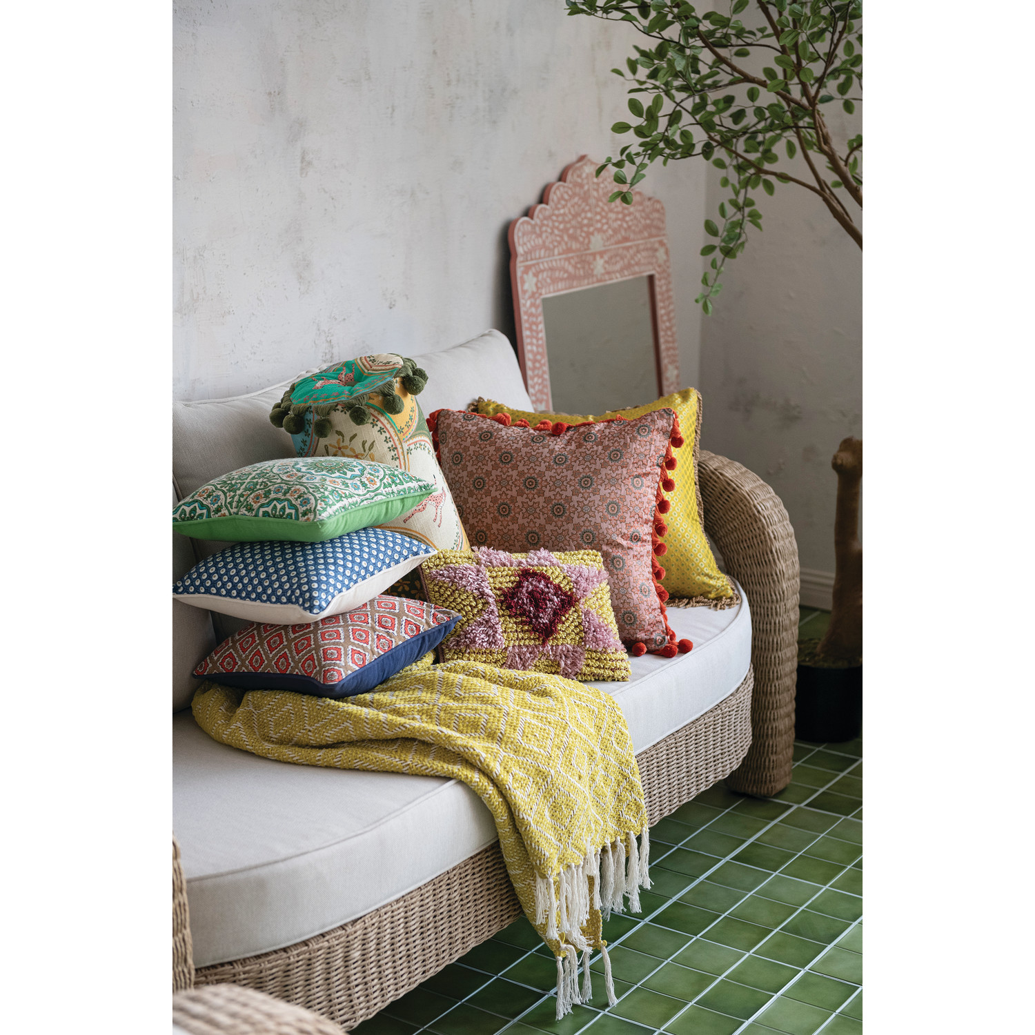 Catalog Name: 14"L x 9"H Fabric Tufted Indoor/Outdoor Lumbar Pillow w/ Design, Yellow, Pink & Red