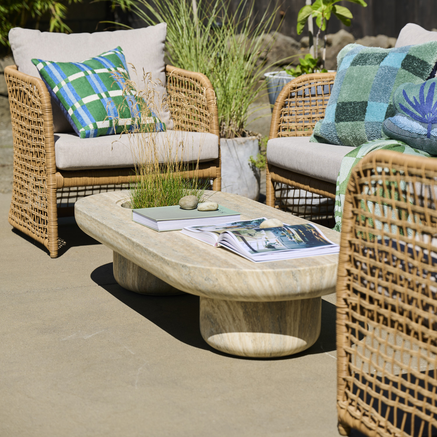 Catalog Name: 20" Square Fabric Tufted Indoor/Outdoor Pillow w/ Plaid Pattern, Blue & Green