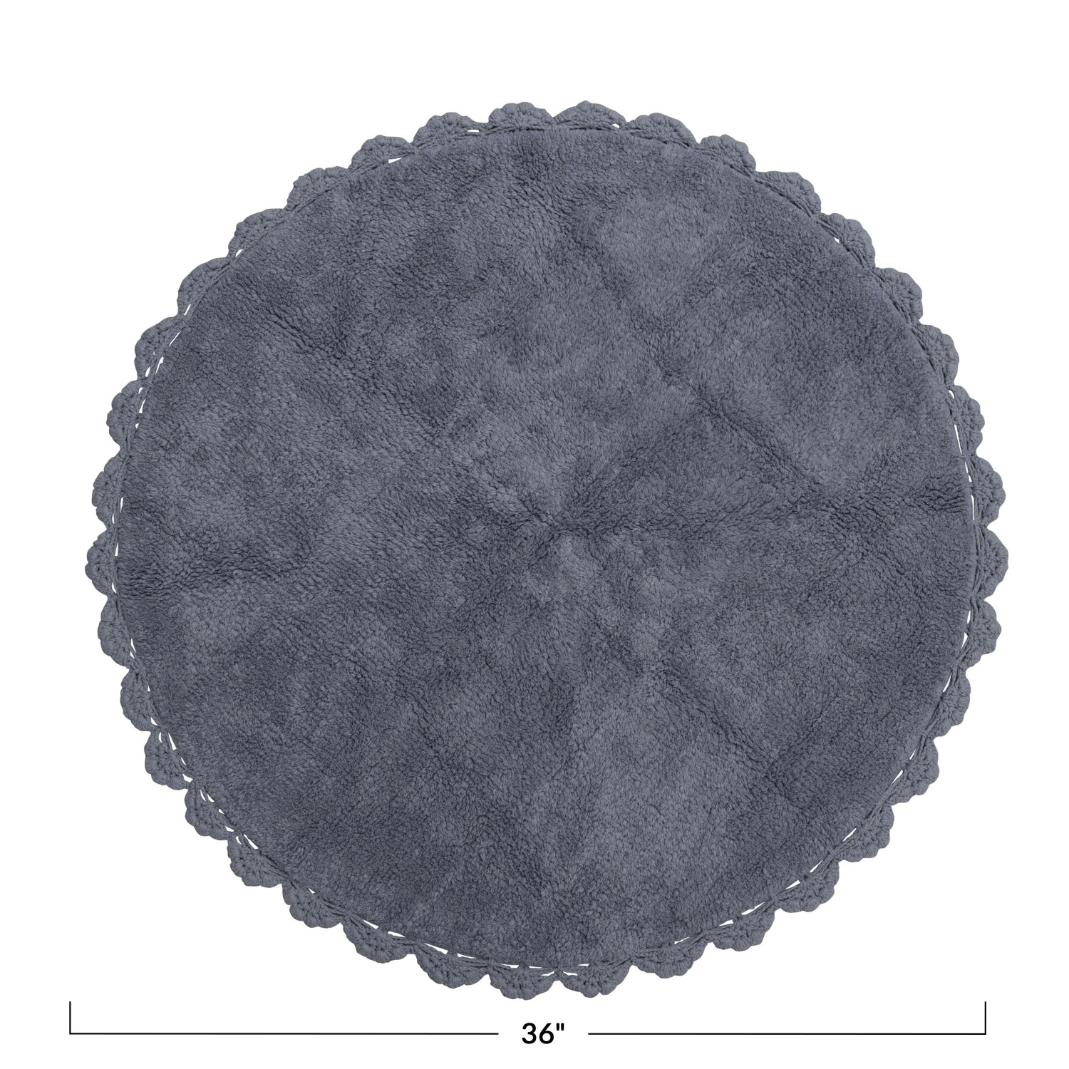 Catalog Name: 3' Round Cotton Tufted Rug w/ Crocheted & Scalloped Trim, Grey