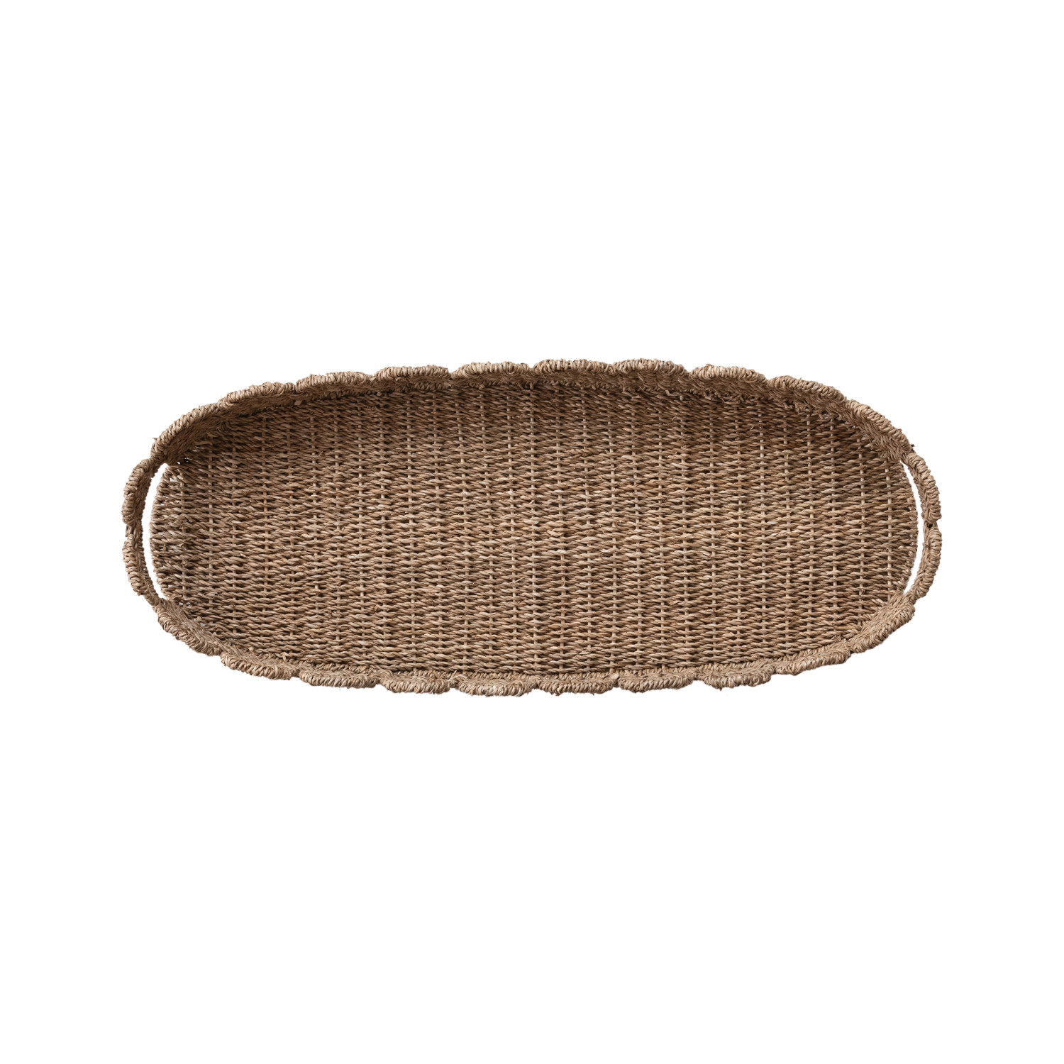 Decorative Hand-Woven Bankuan Scalloped Tray with Handles, Natural