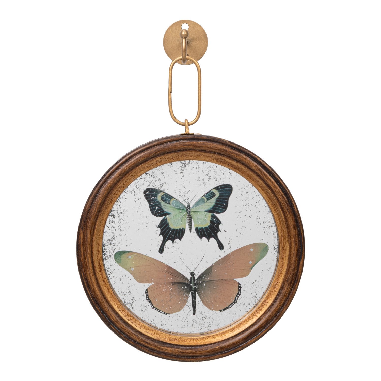 Wood Framed Antique Mirror Wall Decor with Butterflies & Metal Wall Hook, Set of 2