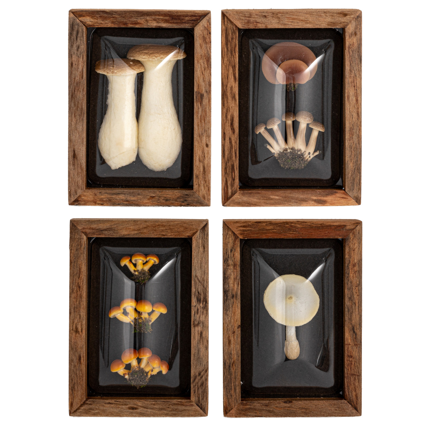 Catalog Name: 4-3/4"W x 6-3/4"H Wood Framed Convex Plastic Shadow Box Wall Décor w/ Faux Mushrooms, Multi Color, 4 Styles
