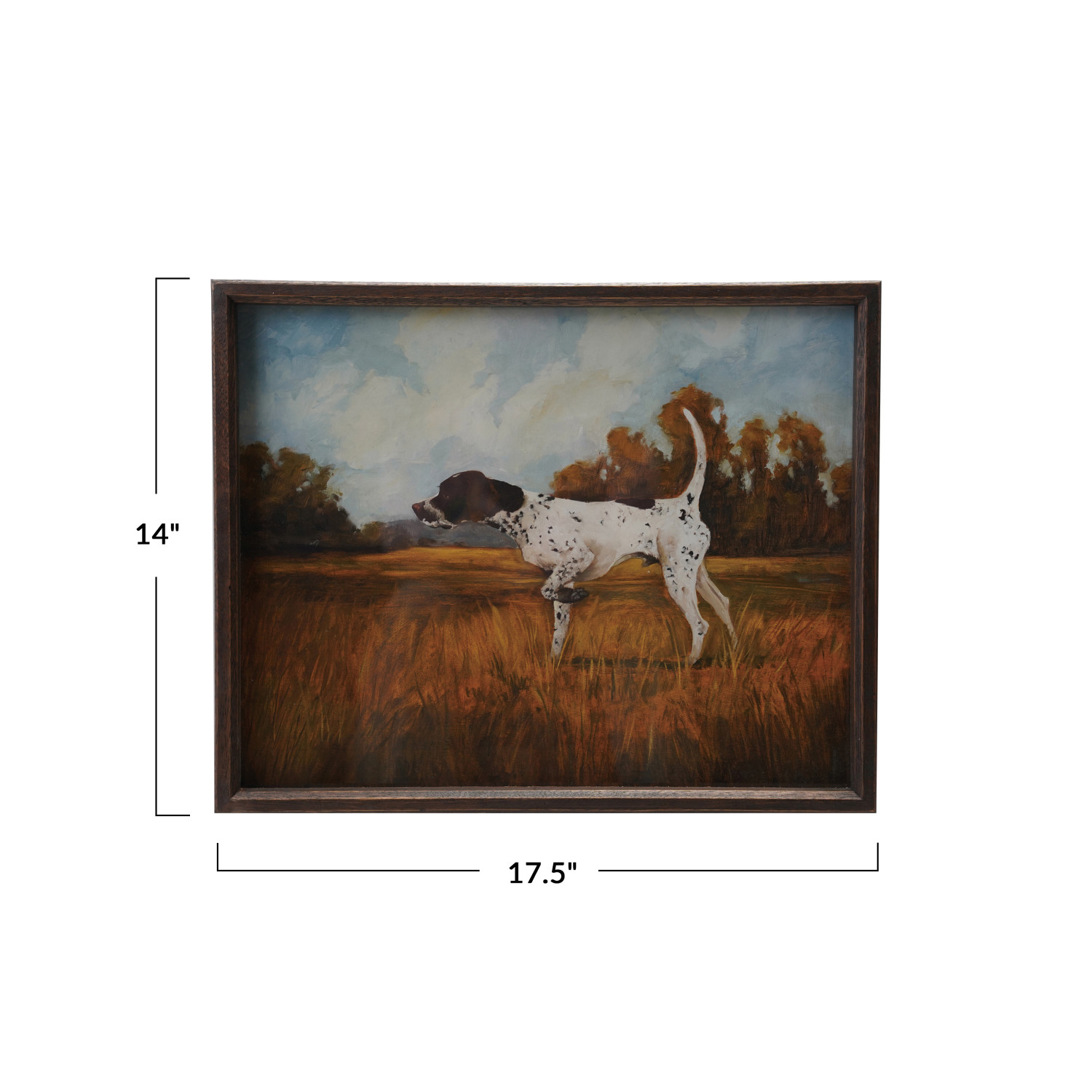Catalog Name: 17-1/2"W x 14"H Wood Framed Glass Wall Décor w/ Pointer Dog Image, Multi Color, Truck Ship ©