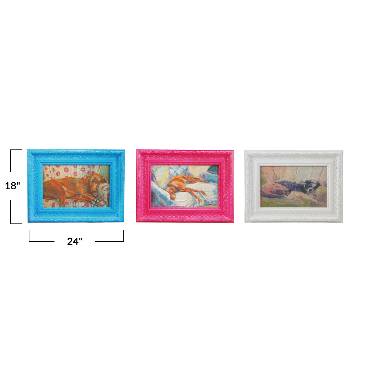Catalog Name: 18"W x 24"H Moulded Composite Framed Wall Décor w/ Sleeping Dog Image, Multi Color, 3 Styles, Truck Ship