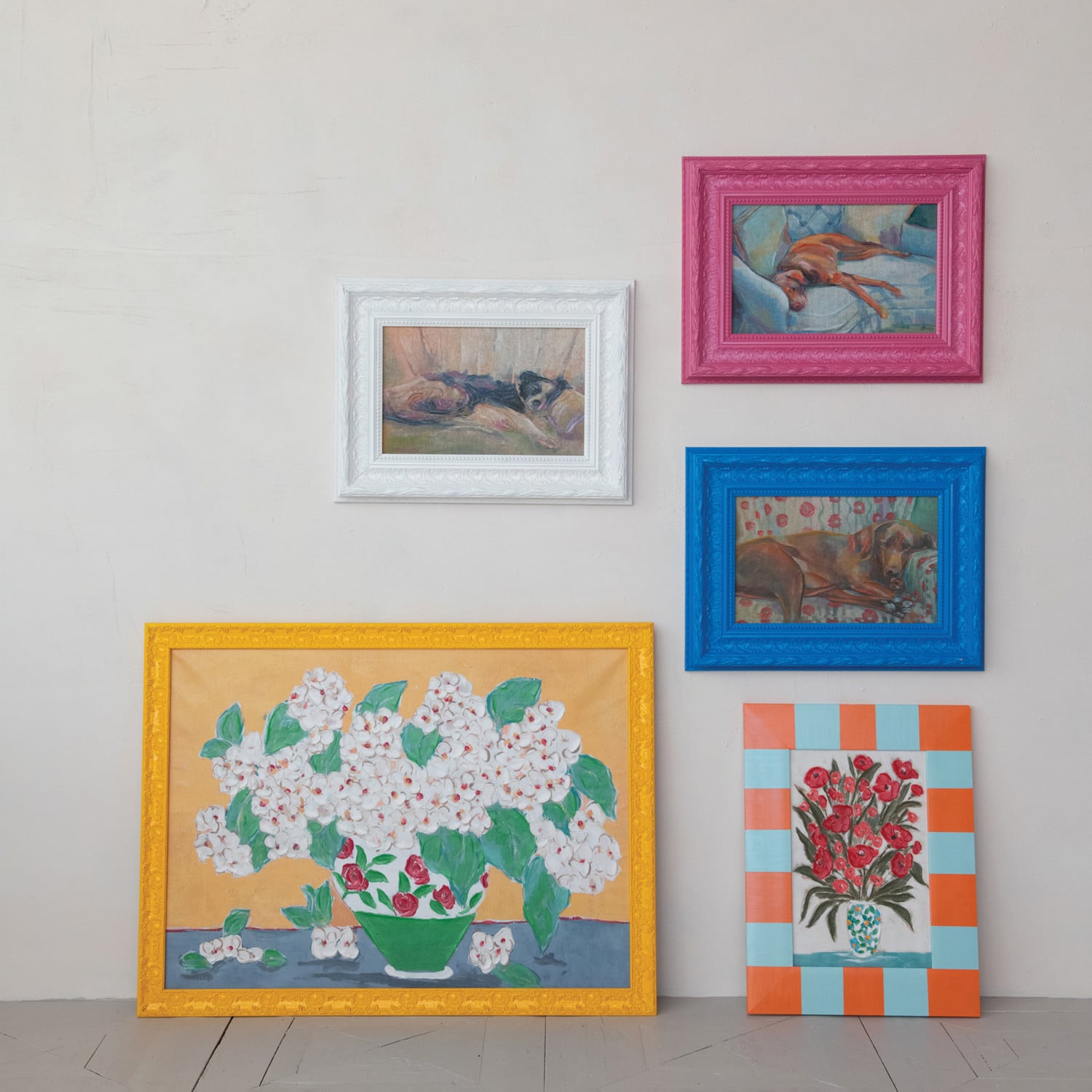 Moulded Composite Framed Canvas Wall Décor w/ Flowers in Vase ©
