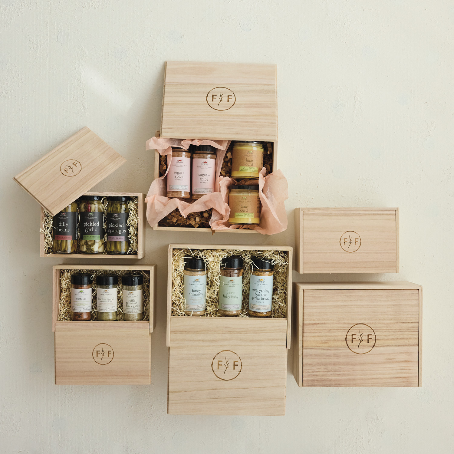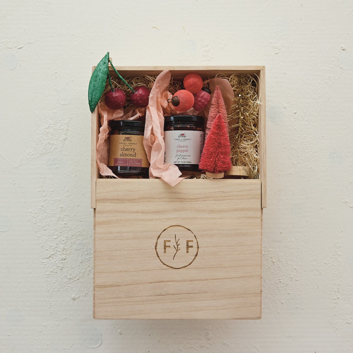 Paulownia Wood Boxes w/ Laser Etched "Finch + Fennel" Logo, Natural, Set of 2