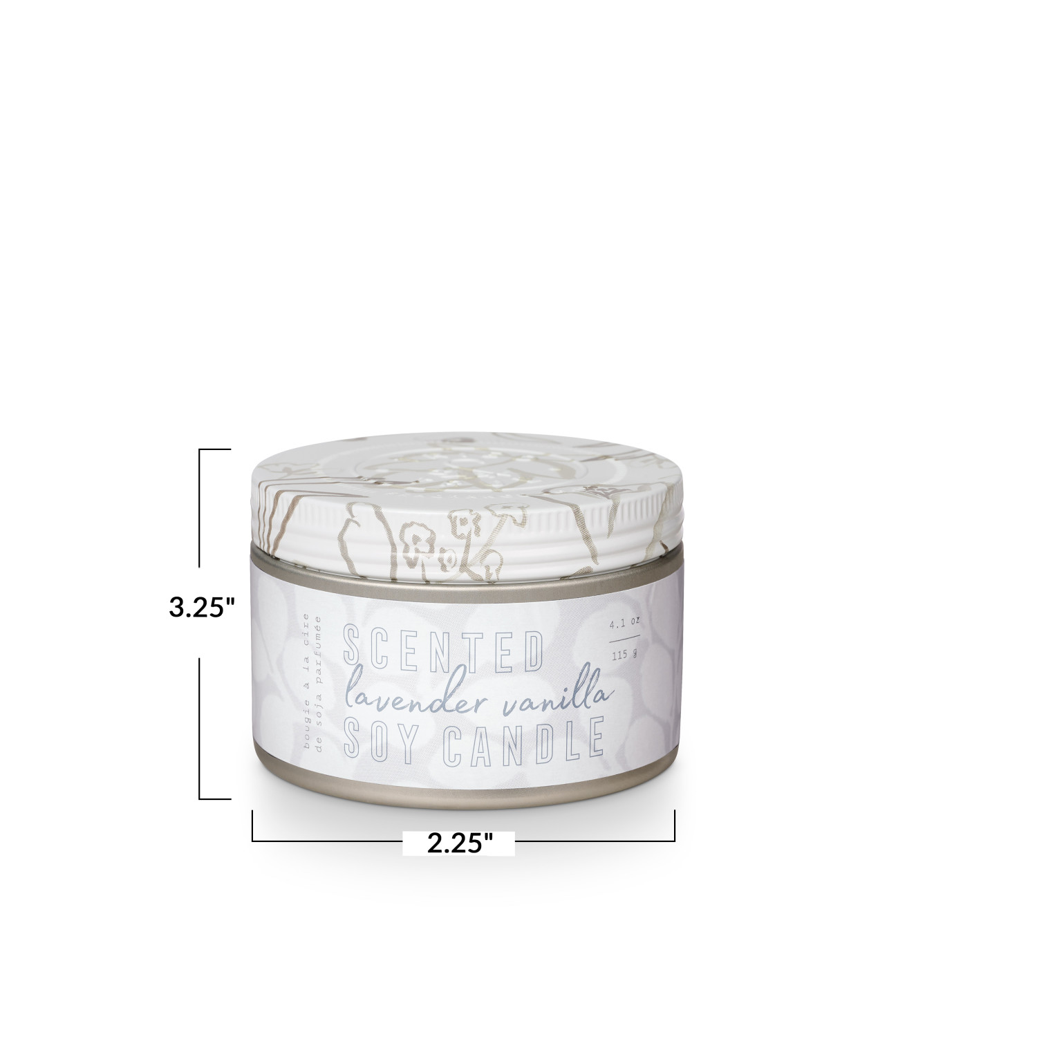 Fresh and familiar for every room in the house. Great for gifting, the small tin with colored wax and a decorative wrap label makes a perfect addition to seasonal home decor. Design details like hand illustration and embossed lids add quality and style. This scent features notes of lavender, eucalyptus, and vanilla. Plant-based soy blend candle poured in the USA. Thoughtfully designed from wax to wick, our candles add warmth and ambiance to any interior design scheme. Burns up to 20 hours; 1 wick.