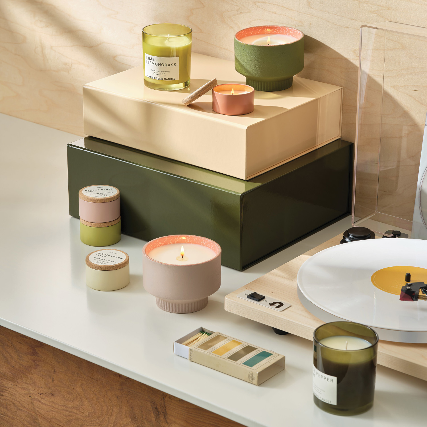 Inhale a fresh start inspired by the earthy green of the growing garden. Steeped in a Cali-cool vibe, these simple designs pair with a hint of retro throwback. Solid on the outside, speckled on the inside, this angular ceramic has a gentle taper and ribbed foot for a touch of texture. This scent features a fresh spritz of lemon-lime, rose, and soothing green tea. Plant-based soy blend candle poured in the USA. Thoughtfully designed from wax to wick, our candles add warmth and ambiance to any interior design scheme. Burns up to 25 hours; 1 wick.